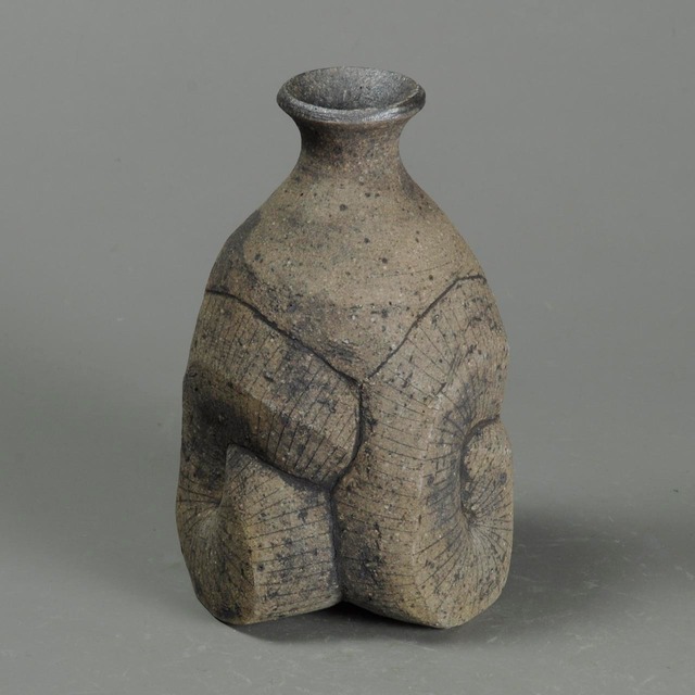 炻器とは聞きなれないと思いますが、日本では焼き締めが通称です。 焼きしめで鉄分の多い土を象嵌した徳利です。 ロクロを引いた後、変形させて成形しています。 花入としても使えます。 W8 D8 H12.7cm 280g It is a sake bottle inlaid with clay containing a lot of iron. You can also use it as a flower vase. Wheel throwing built Stoneware Reduction firing and reduction cooling