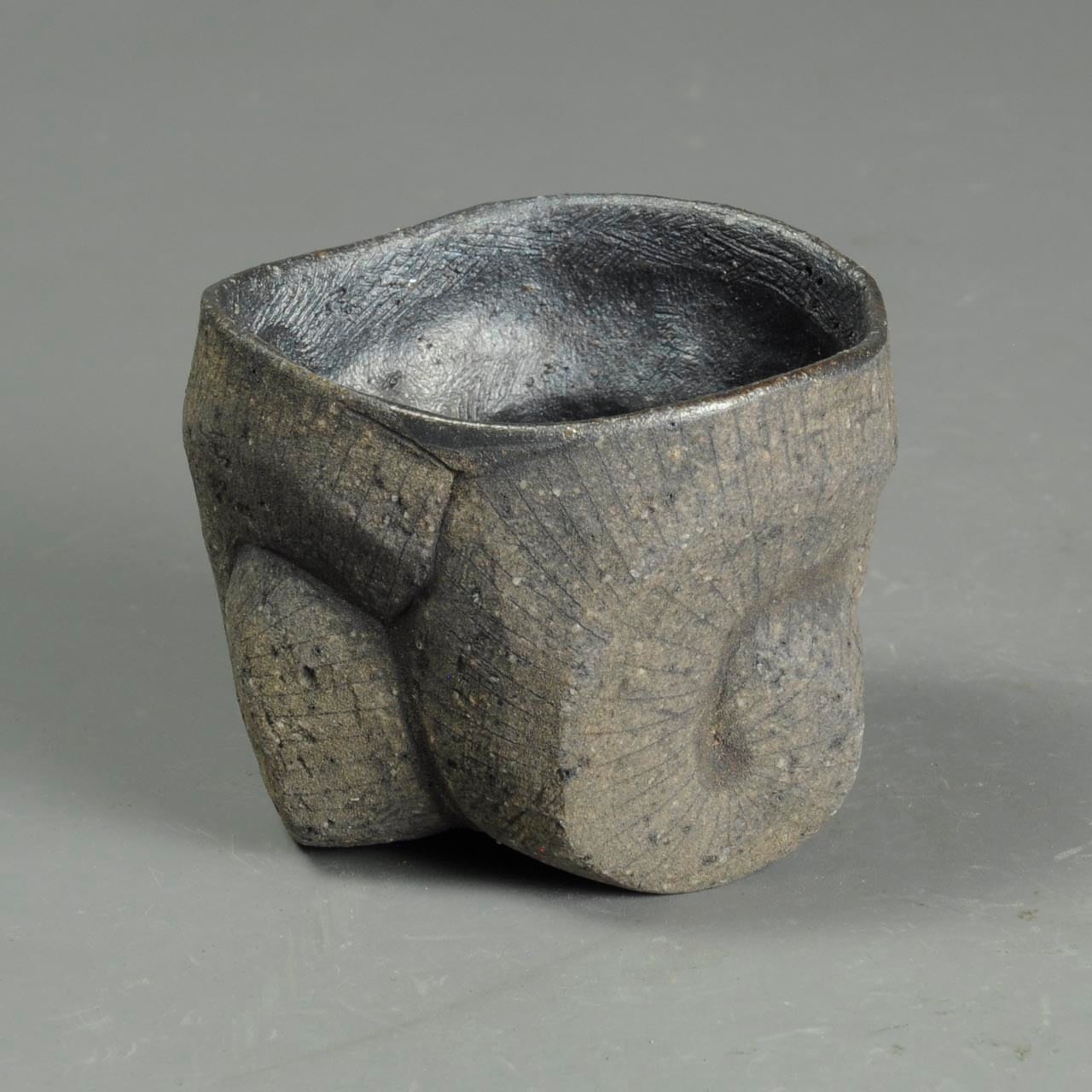 細い線は鉄分の多い土を象嵌していて、冷却還元焼成しています。