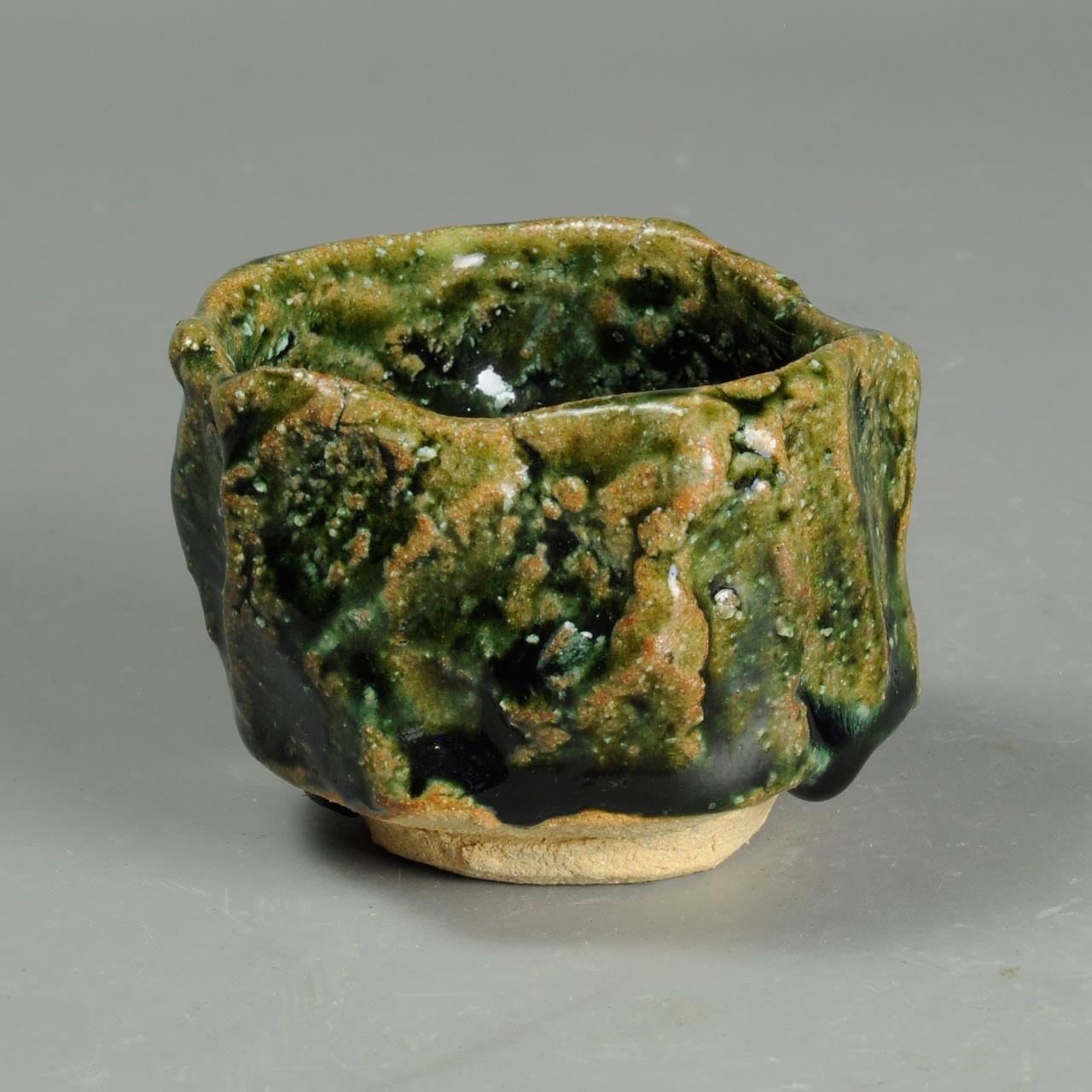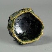 酸化で焼成していて、釉薬は織部釉で原土の荒々しさがでています。