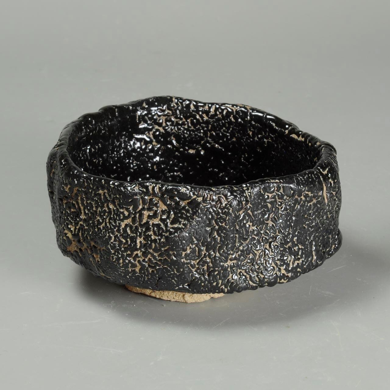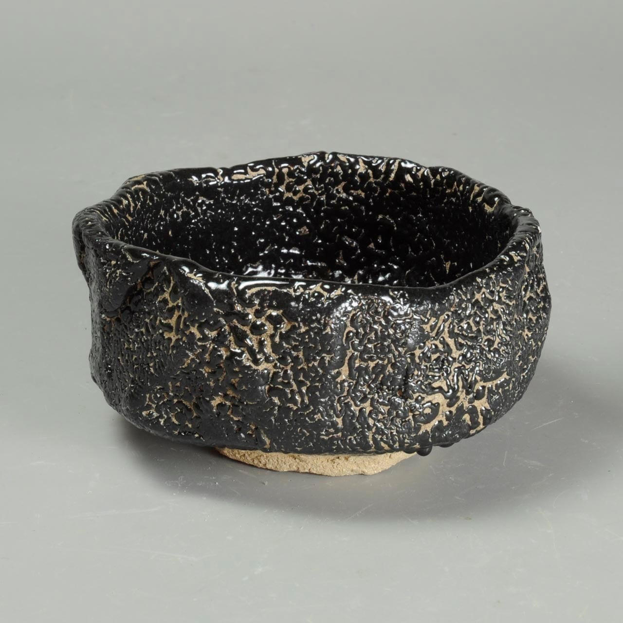 美濃系の原土を塊から刳り貫いて成形した茶碗です。