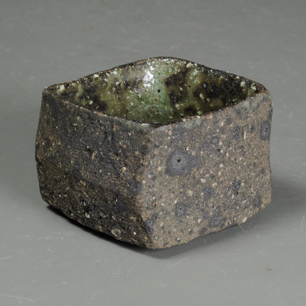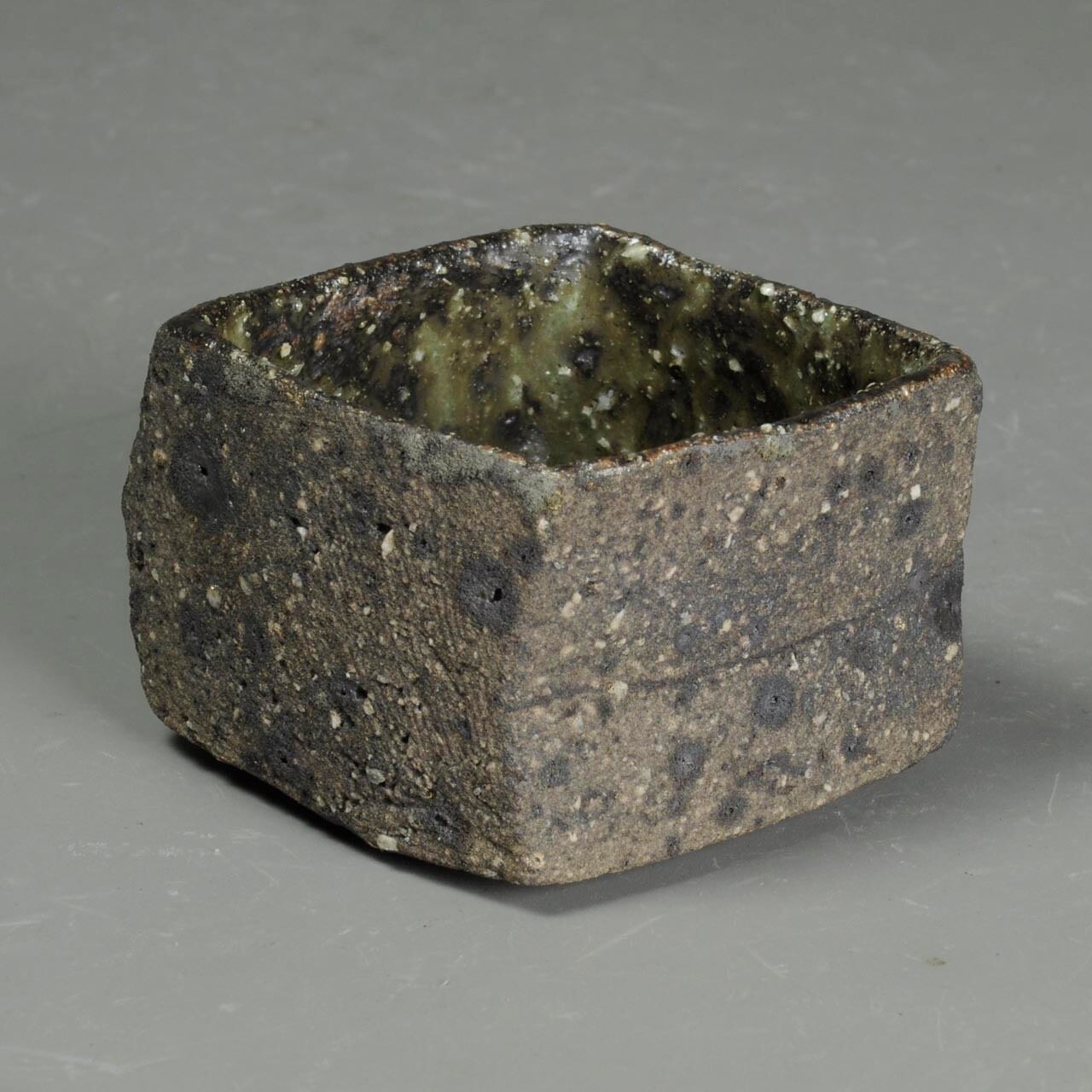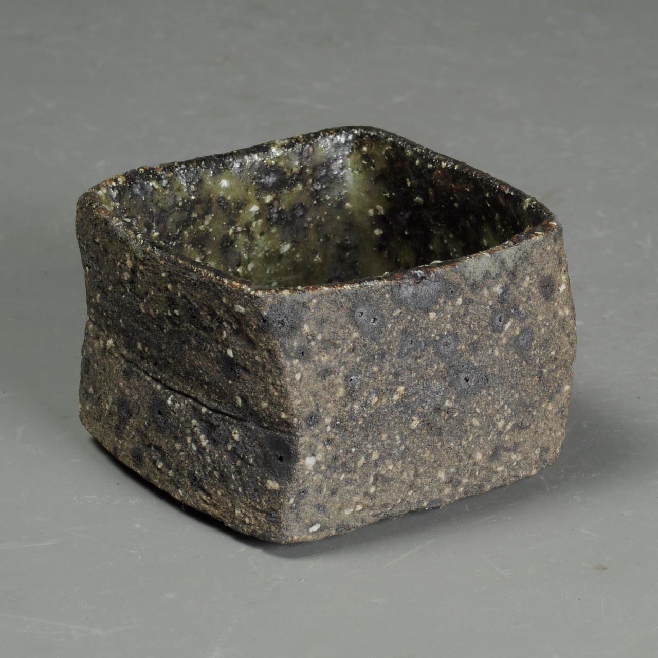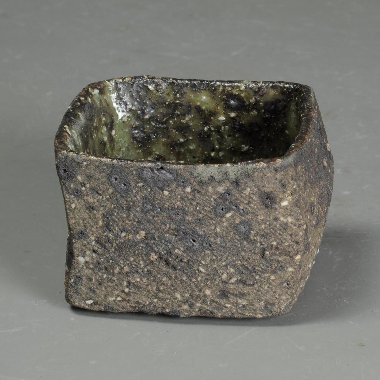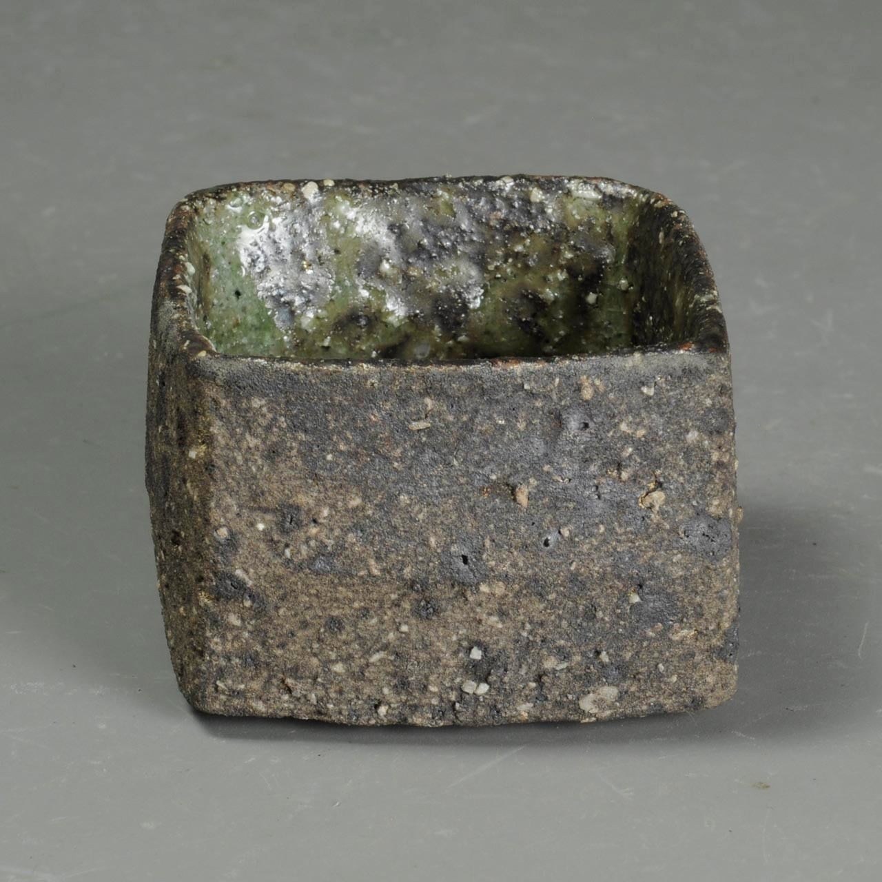 かなり粗い土なので表面がガサガサしていますが、内側に灰釉が掛けてあります。