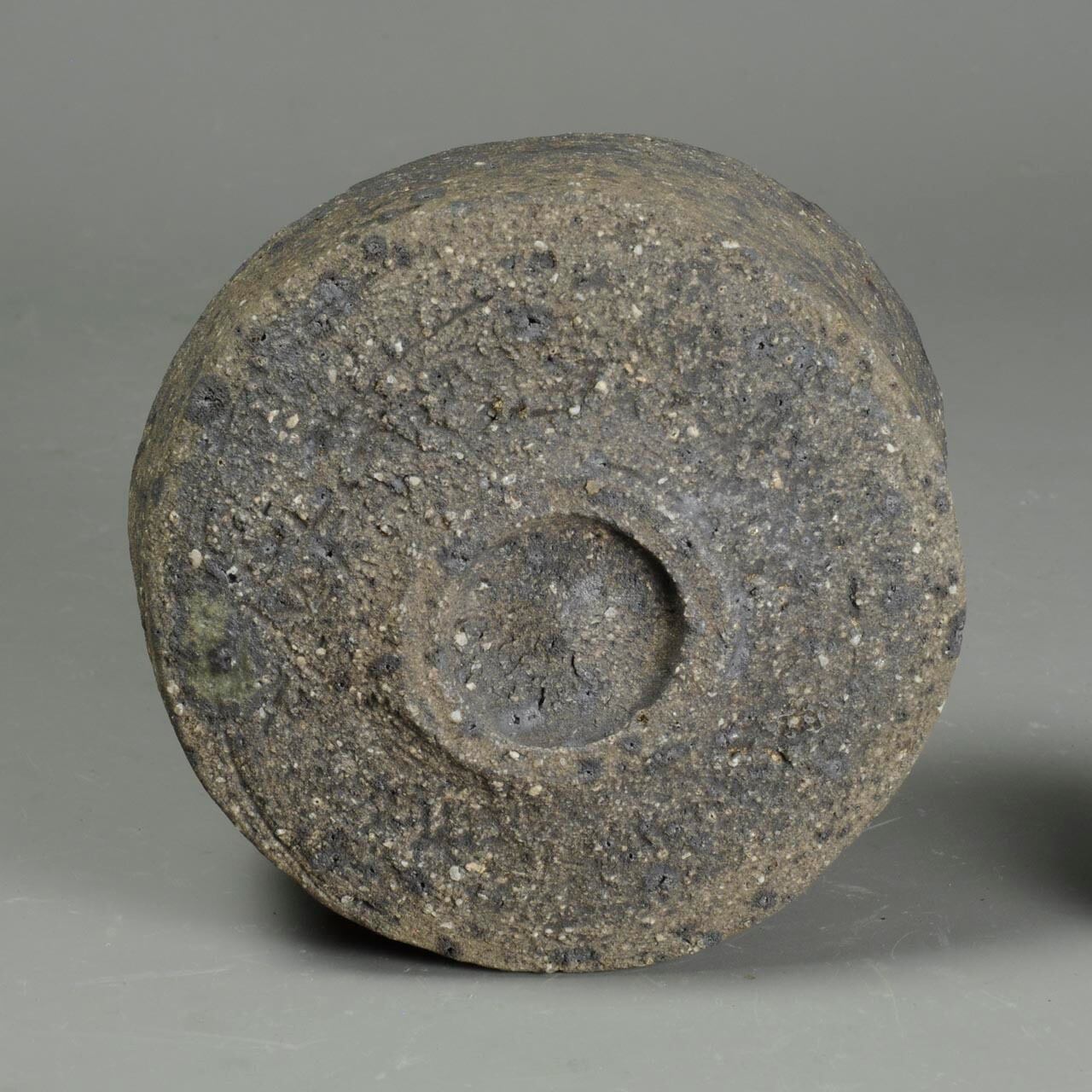 かなり粗い土なので表面がガサガサしていますが、内側に灰釉が掛けてあります。