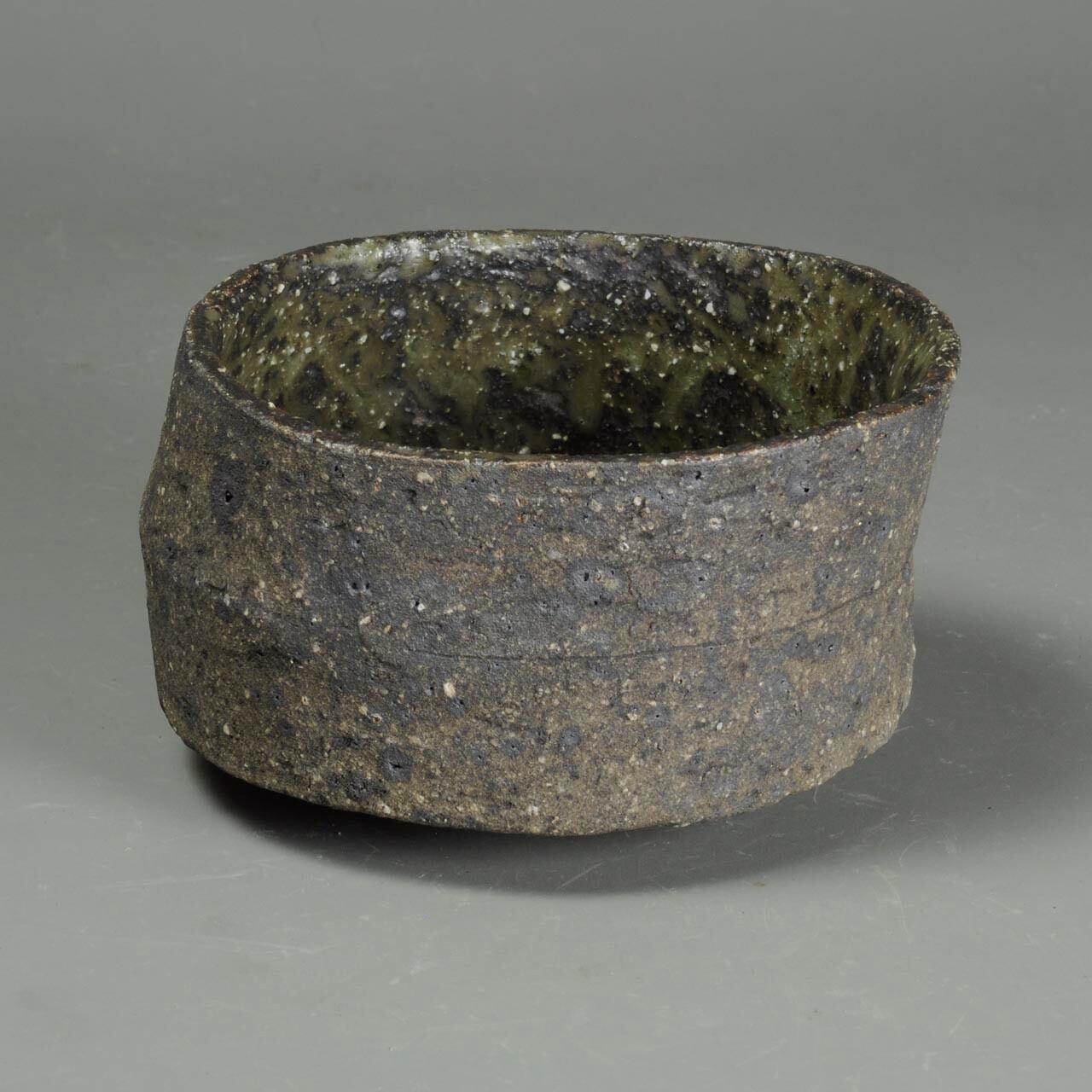 手びねり(玉つくり)で成形した茶碗で、冷却還元で焼成しています。