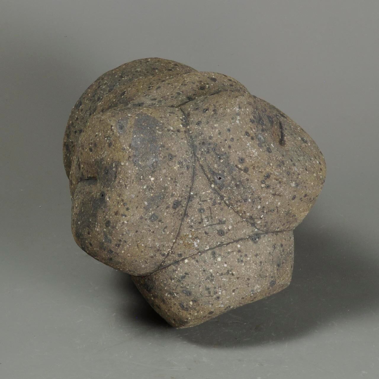 焼きしめの壷で、紐作りで作ってあります。冷却還元焼成です。
