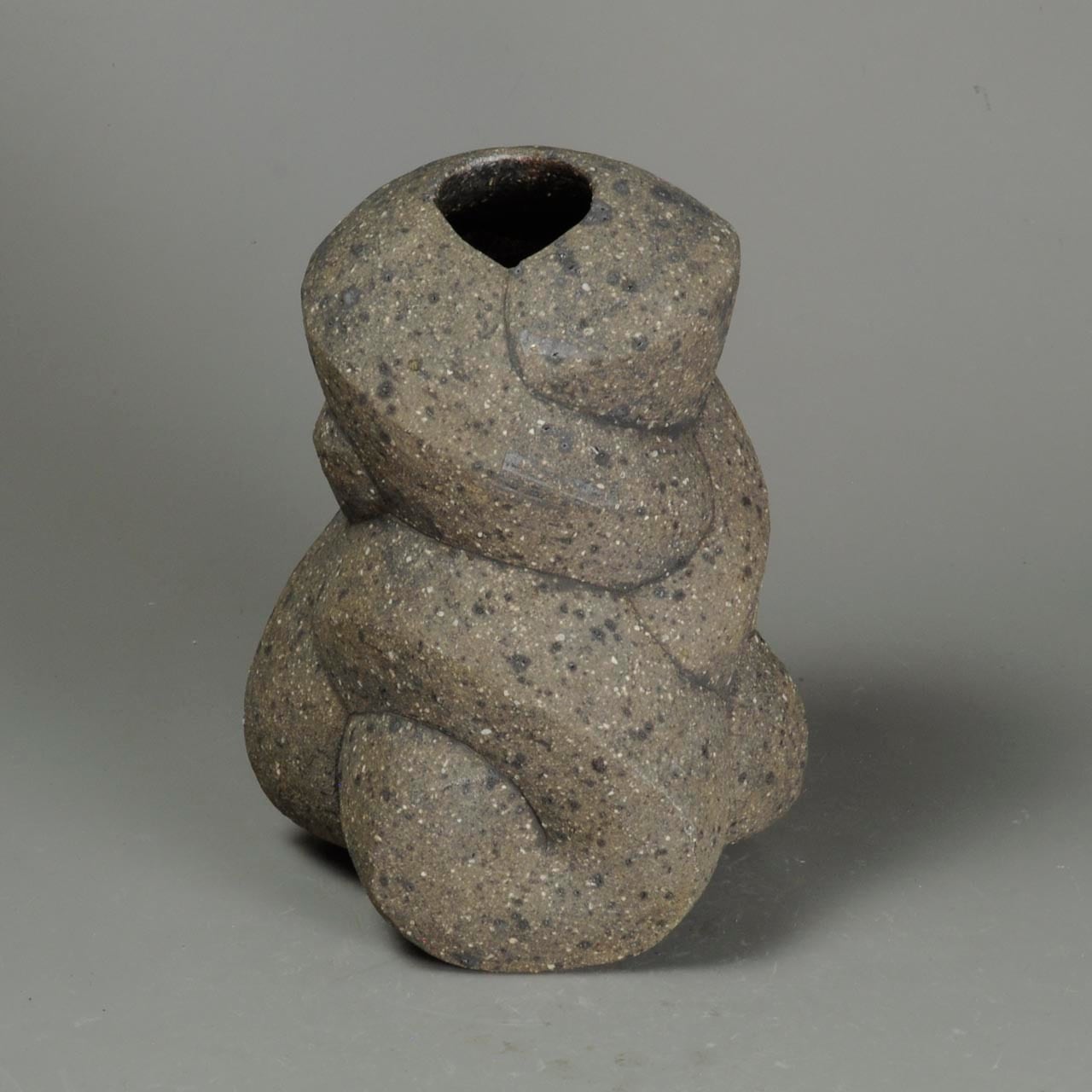 焼きしめの壷で、紐作りで作ってあります。冷却還元焼成です。