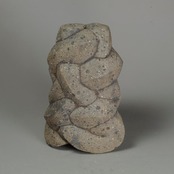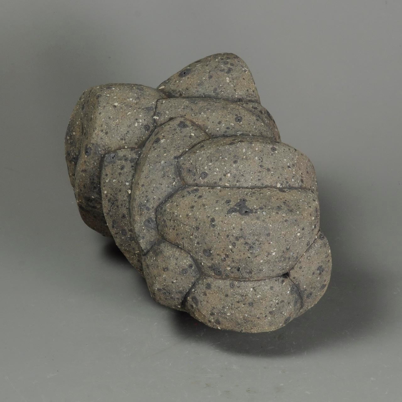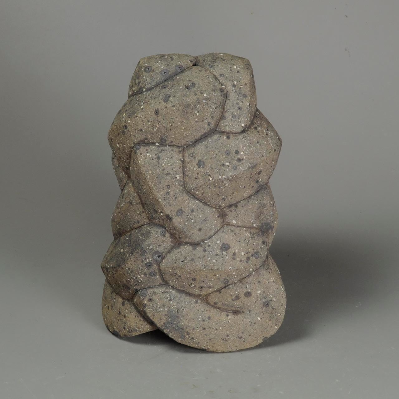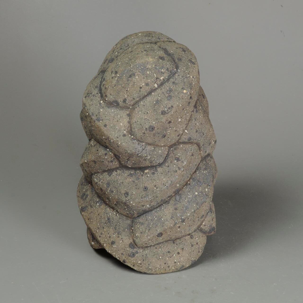 This sculpture is formed using the coiling technique from coarse raw clay containing small stones called rust clay and fine iron particles sourced from the Mino region.