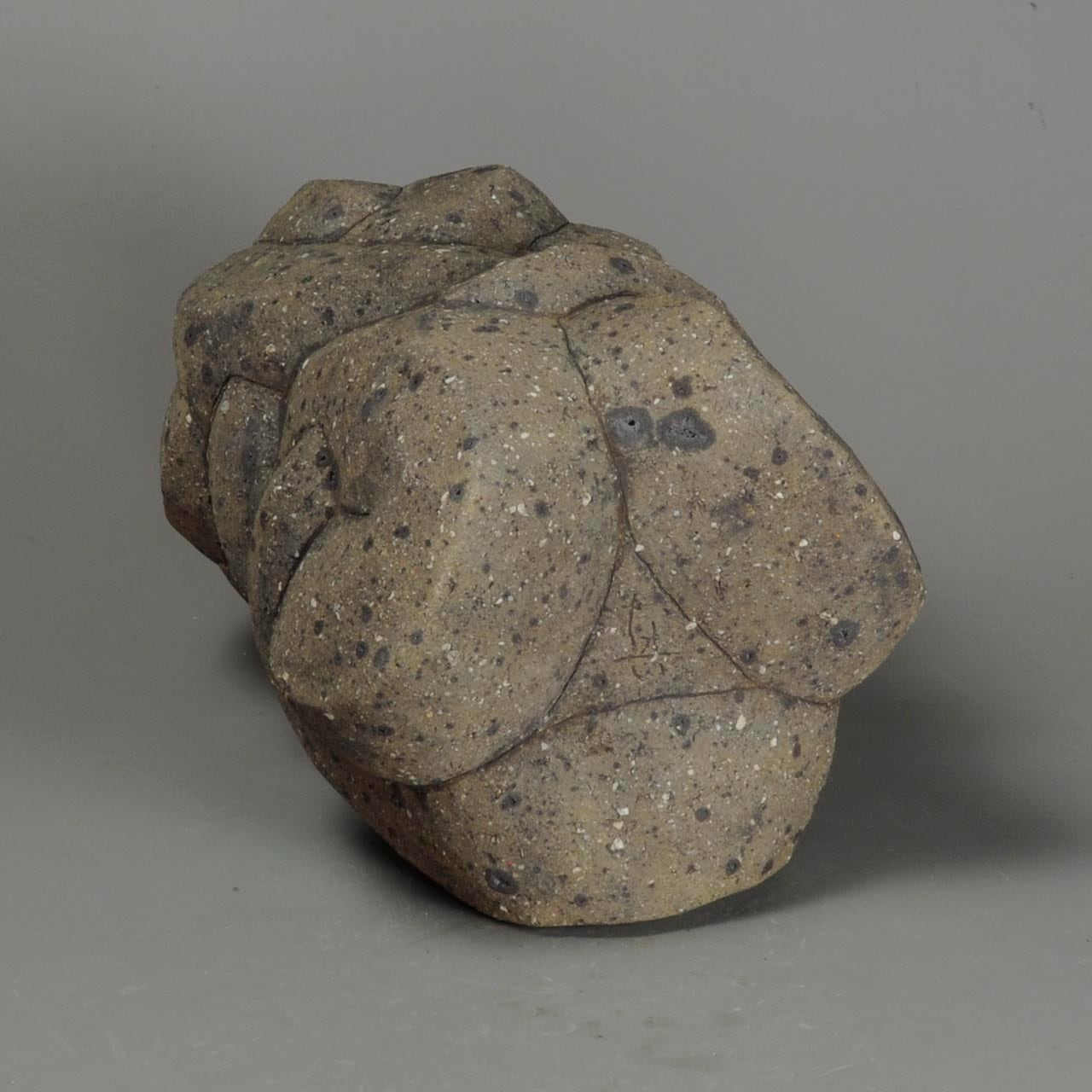 This sculpture is formed using the coiling technique from coarse raw clay containing small stones called rust clay and fine iron particles sourced from the Mino region.