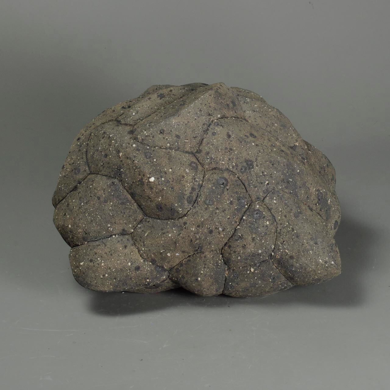 This sculpture is formed using the coiling technique from coarse raw clay containing small stones called rust clay and fine iron particles sourced from the Mino region.