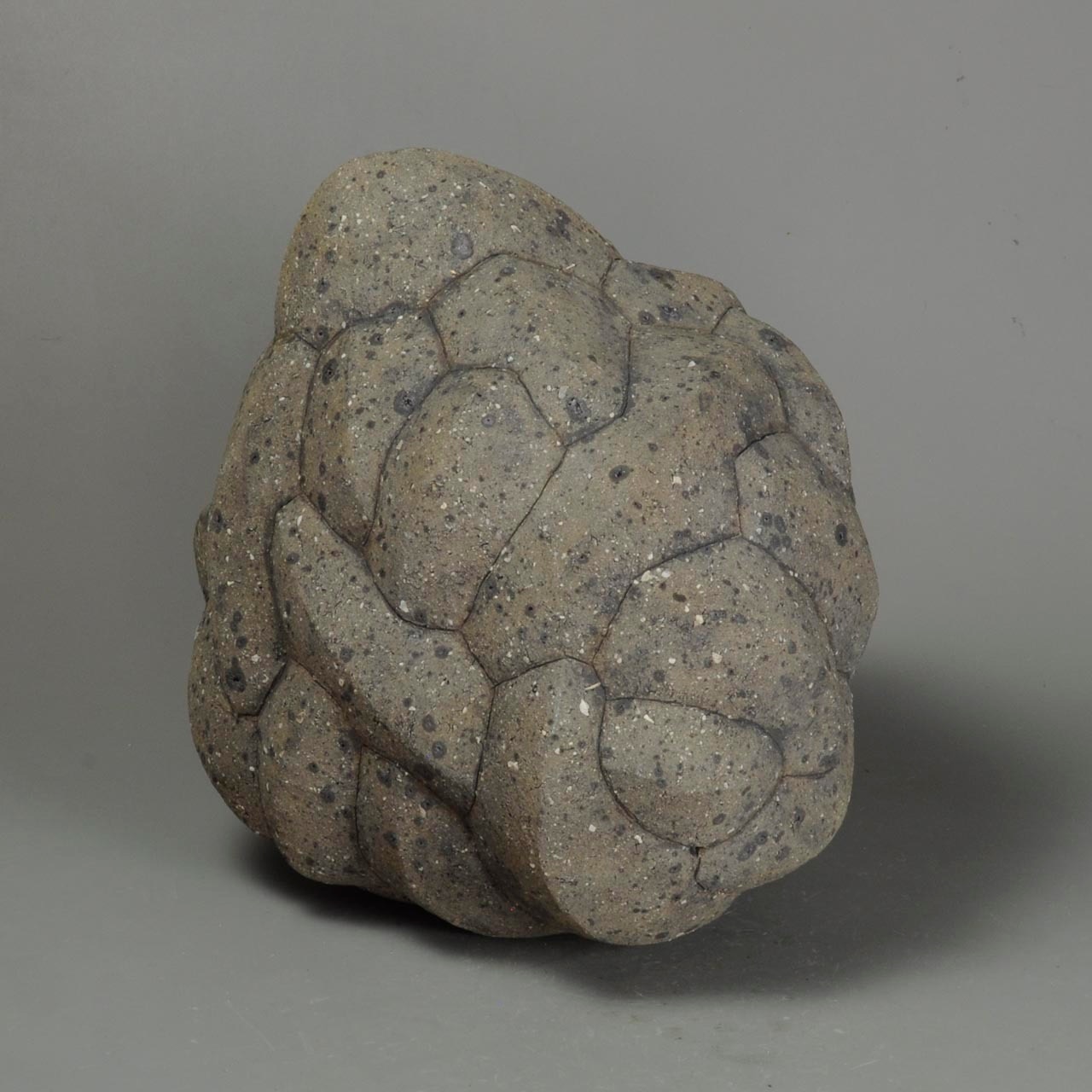 This sculpture is formed using the coiling technique from coarse raw clay containing small stones called rust clay and fine iron particles sourced from the Mino region.