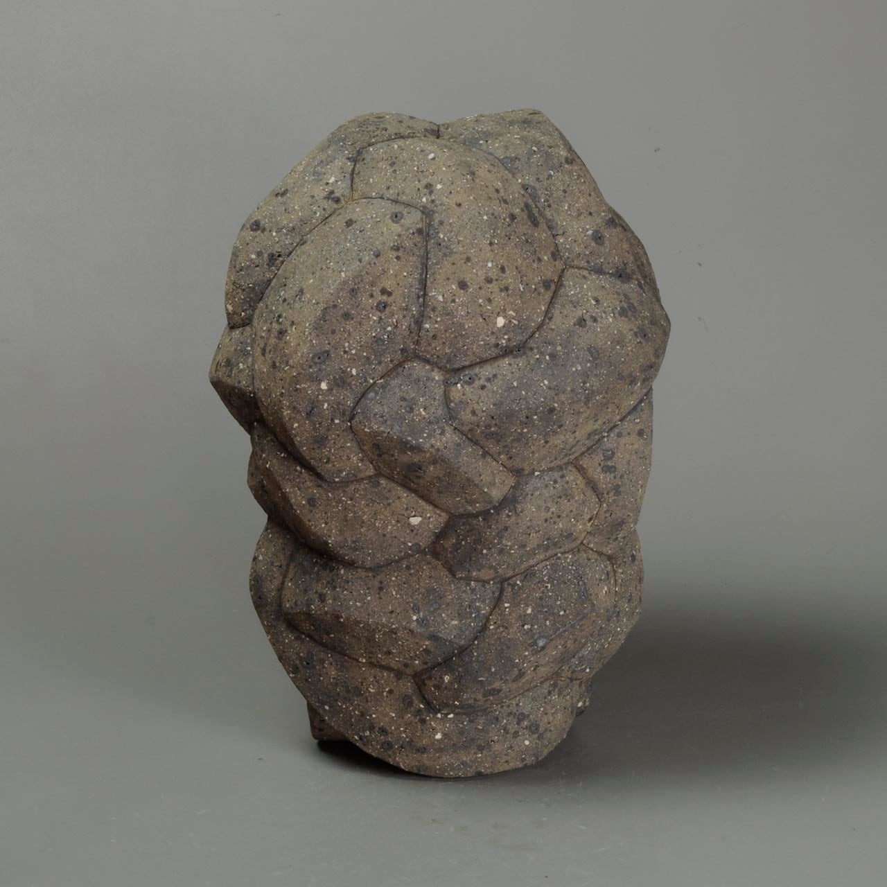 This sculpture is formed using the coiling technique from coarse raw clay containing small stones called rust clay and fine iron particles sourced from the Mino region.