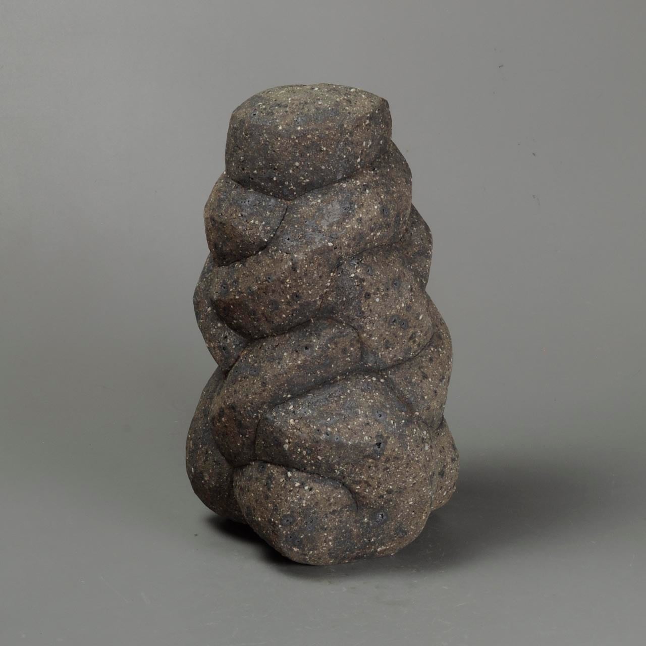 This sculpture is formed using the coiling technique from coarse raw clay containing small stones called rust clay and fine iron particles sourced from the Mino region.