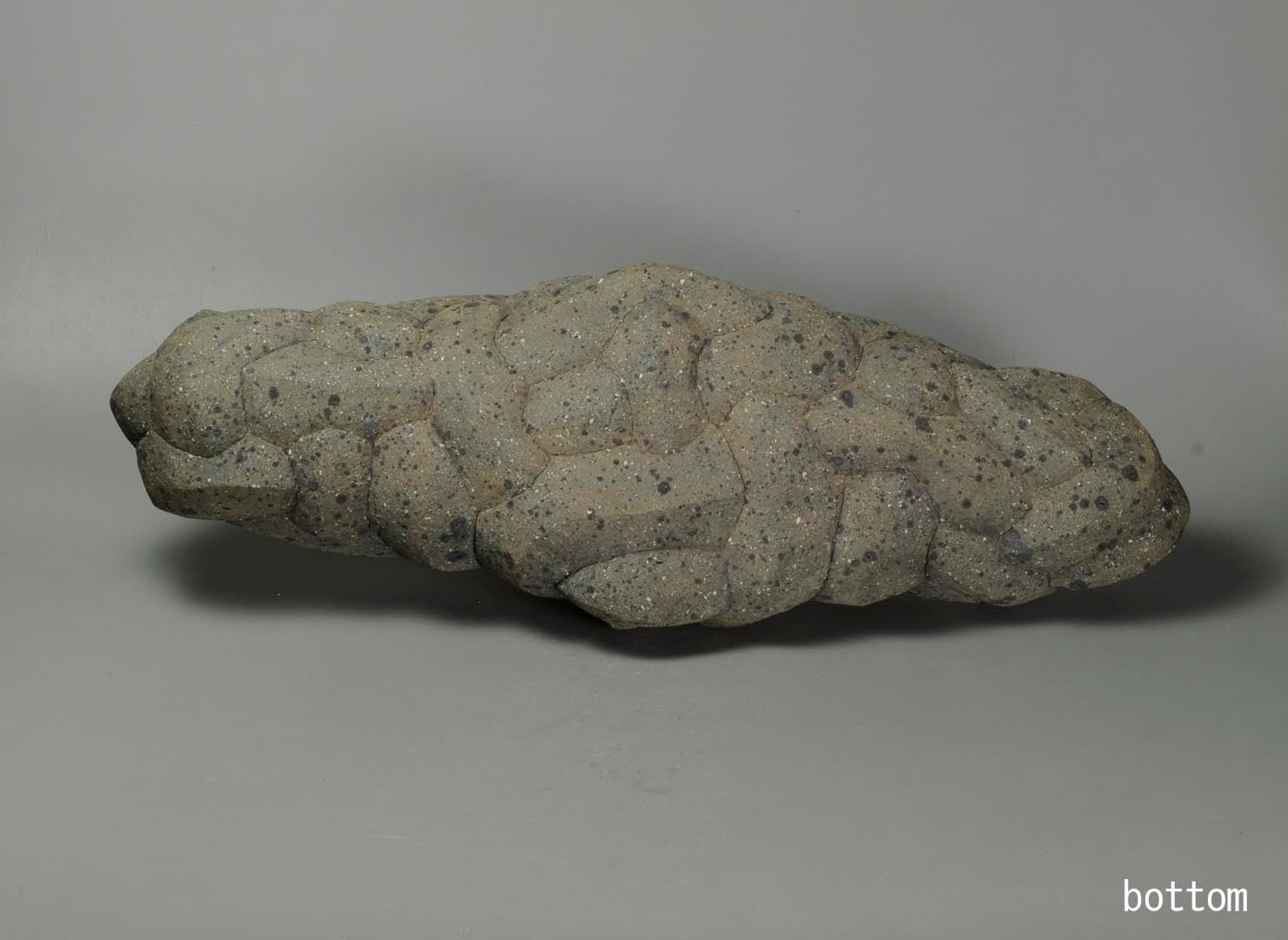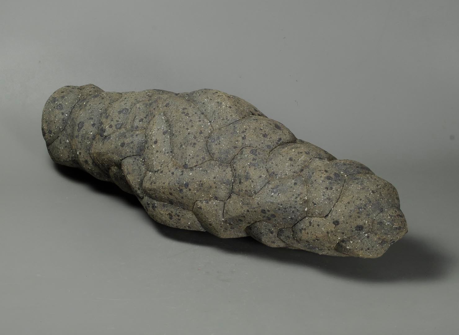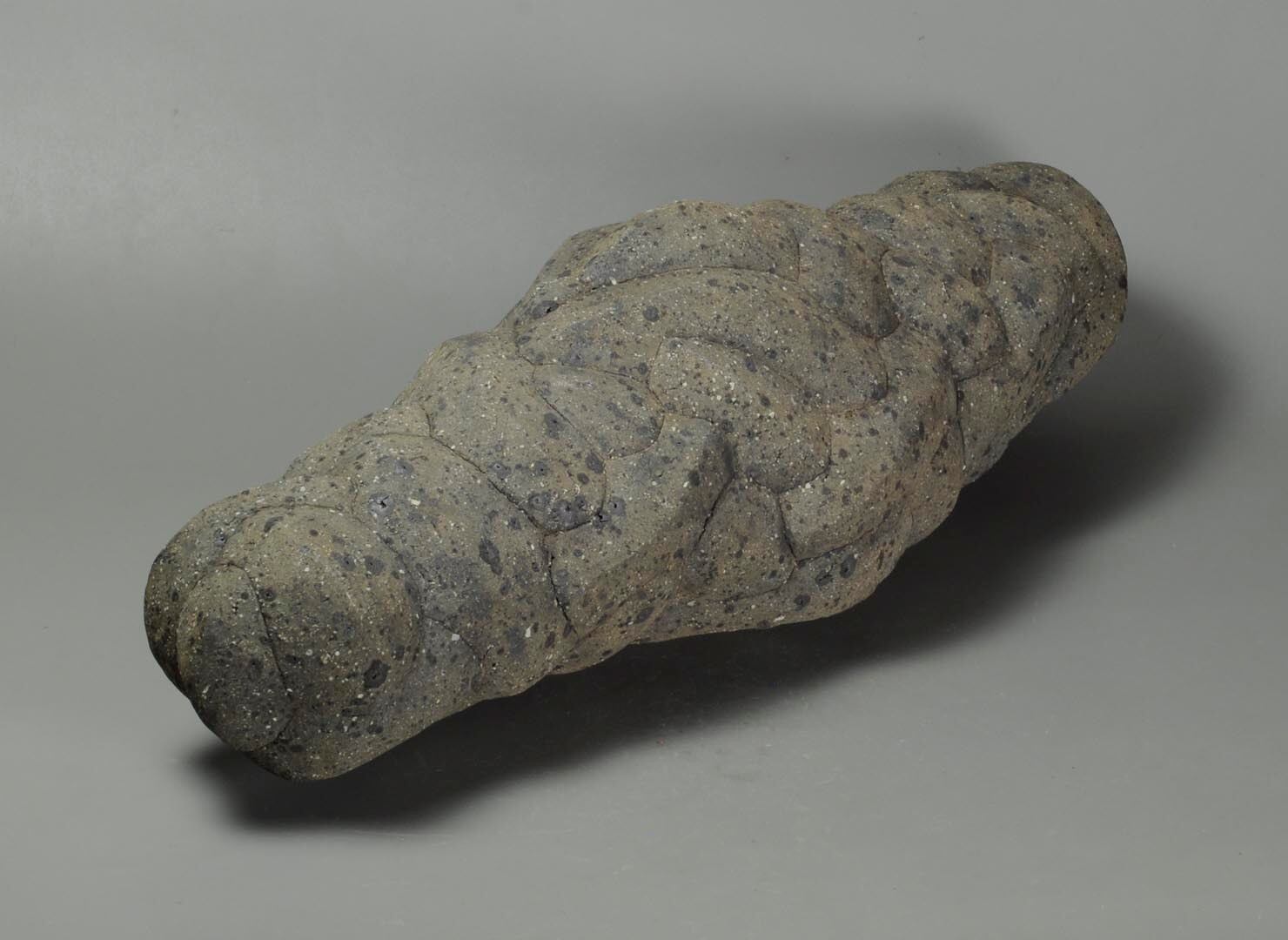 This sculpture is formed using the coiling technique from coarse raw clay containing small stones called rust clay and fine iron particles sourced from the Mino region.