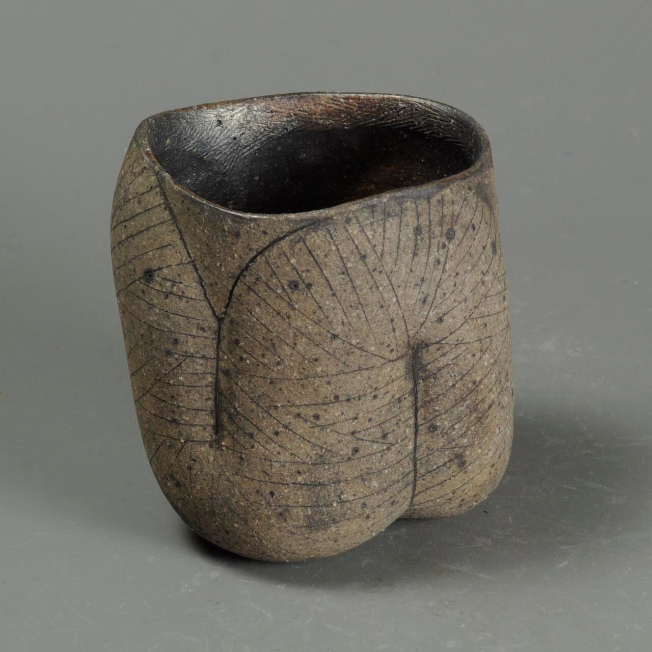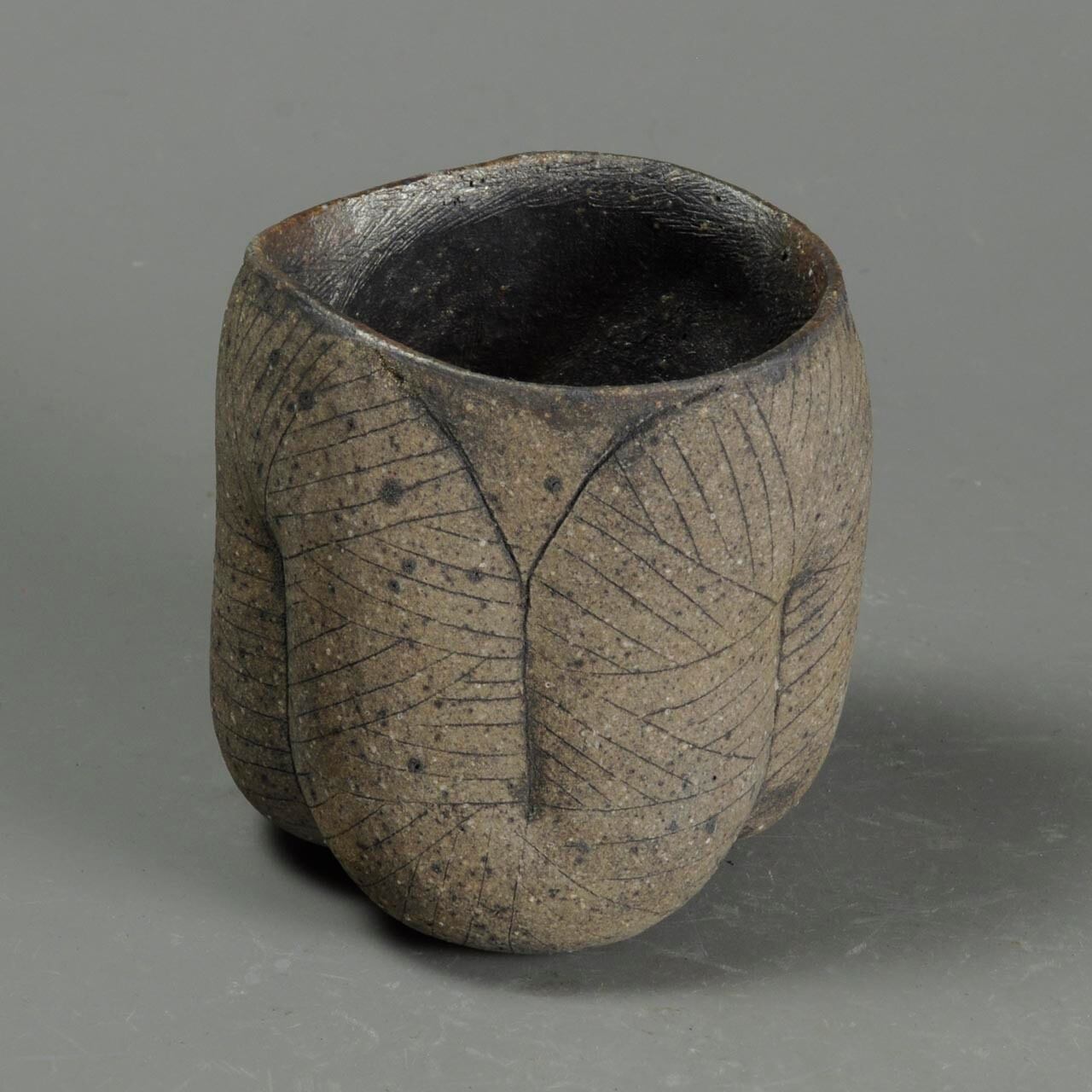 タタラ成形(石膏型に打ち込み)の焼きしめのカップです。