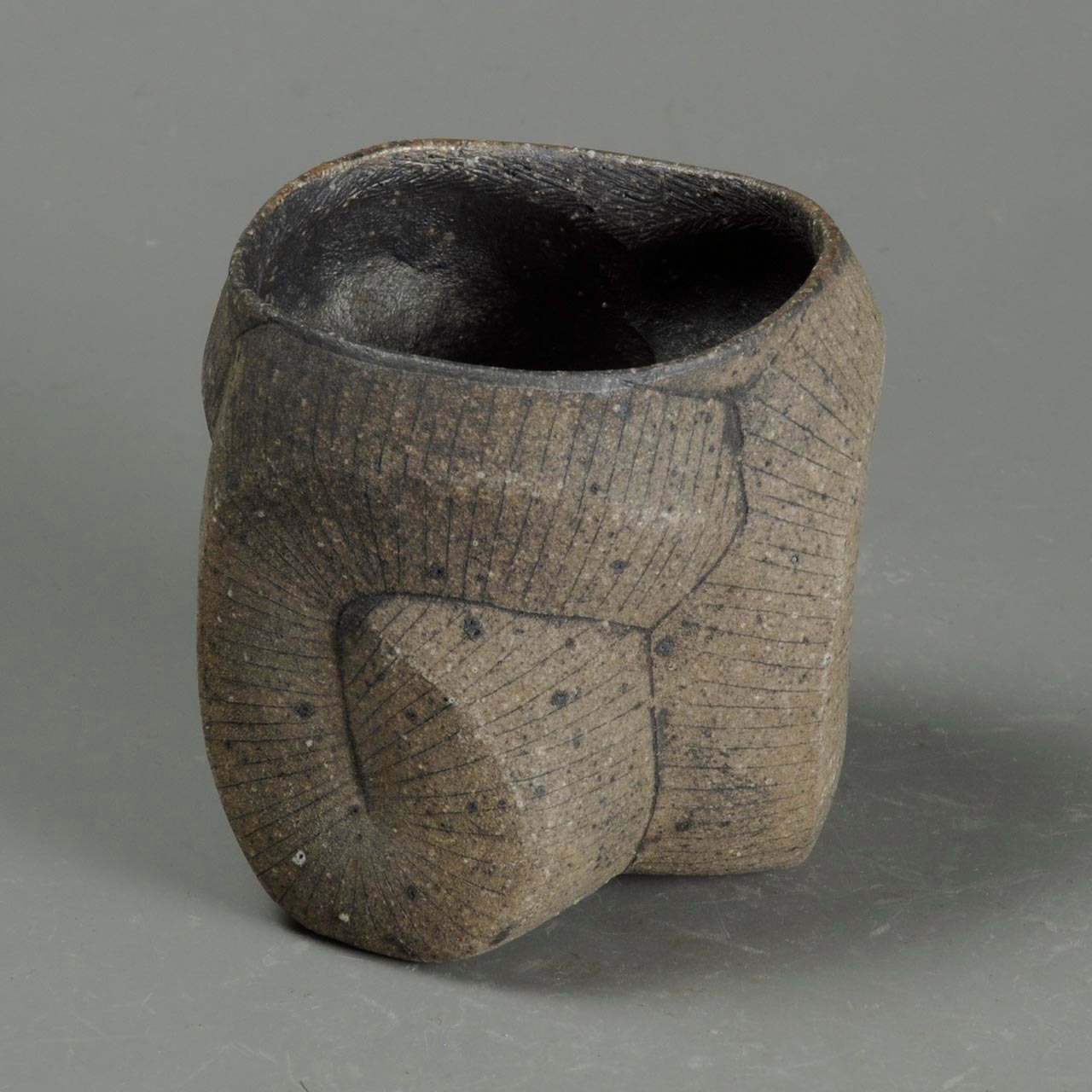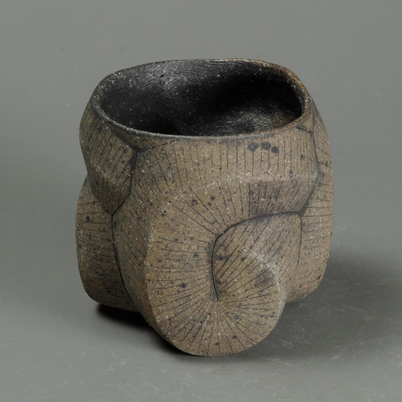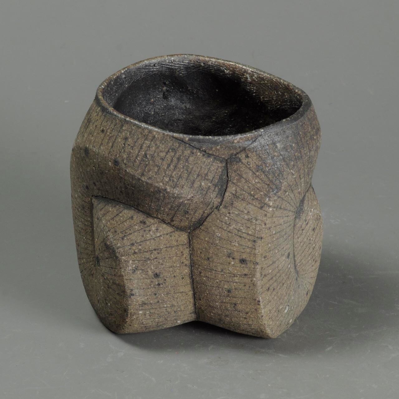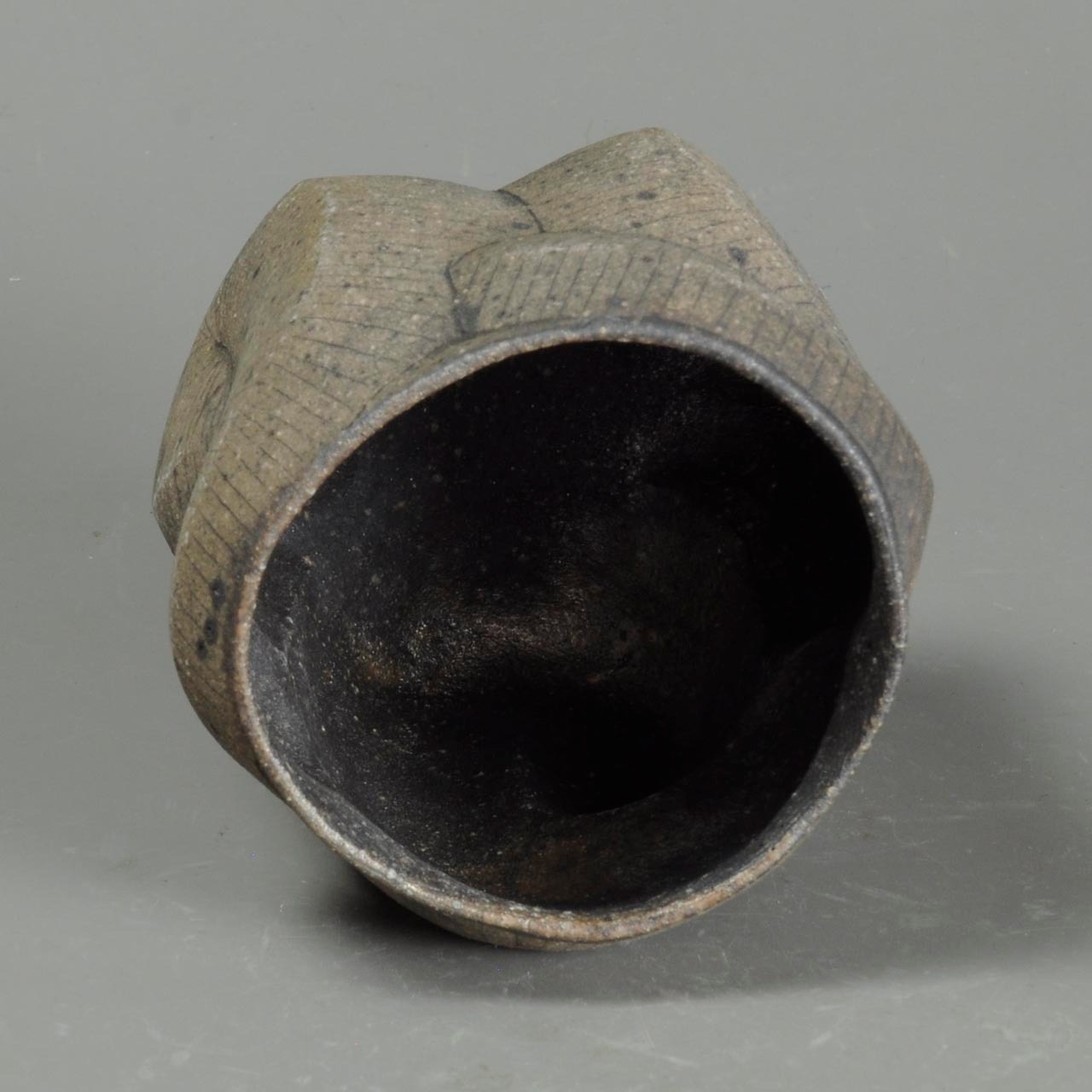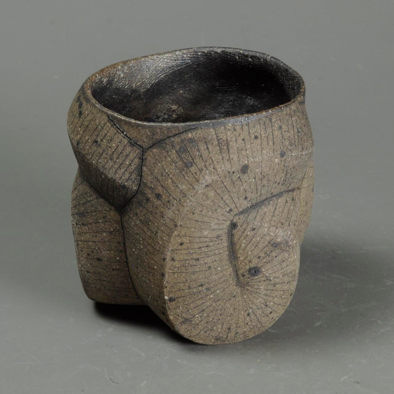 タタラ成形(石膏型に打ち込み)の焼きしめのカップです。