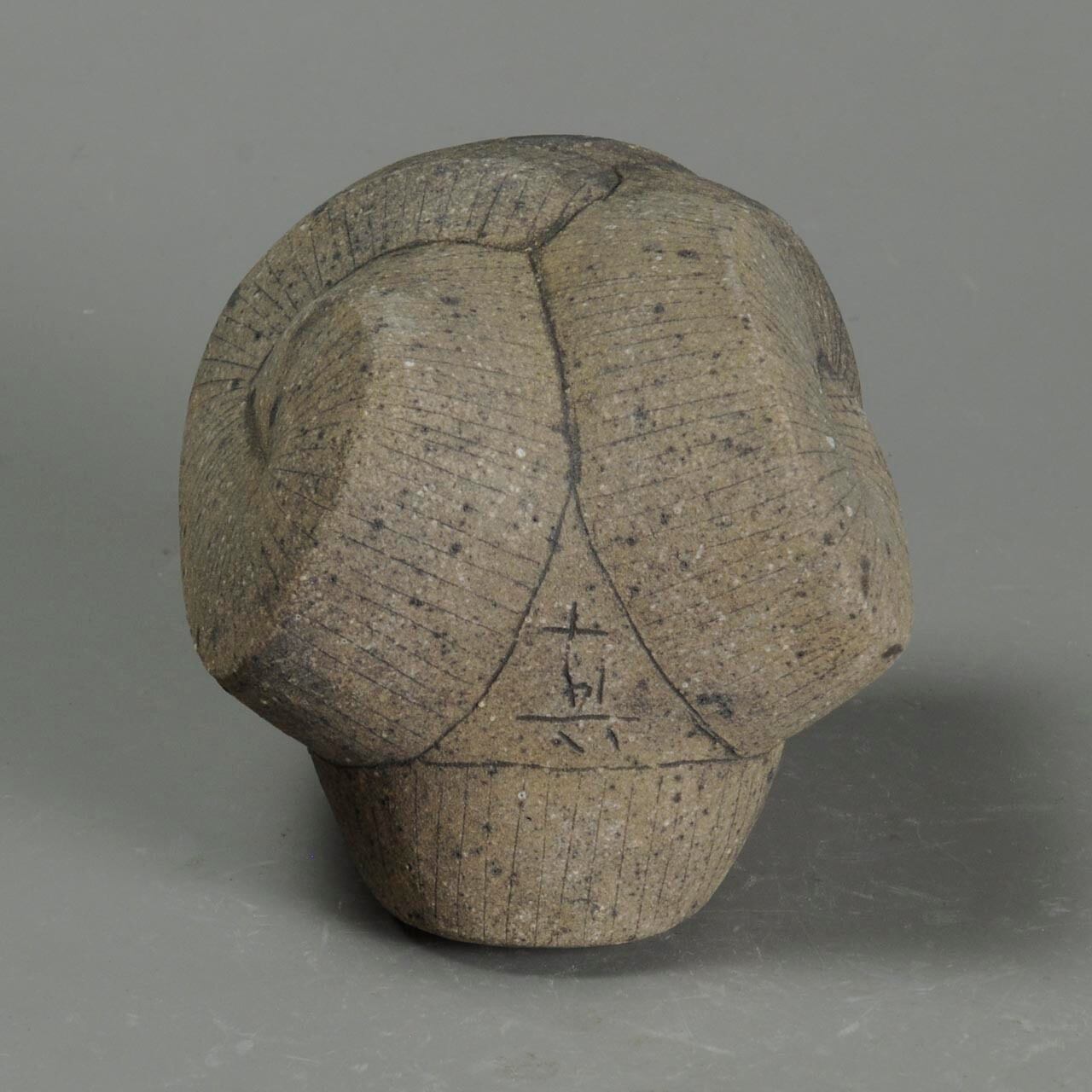細い線は鉄分の多い土を象嵌していて、冷却還元焼成しています。