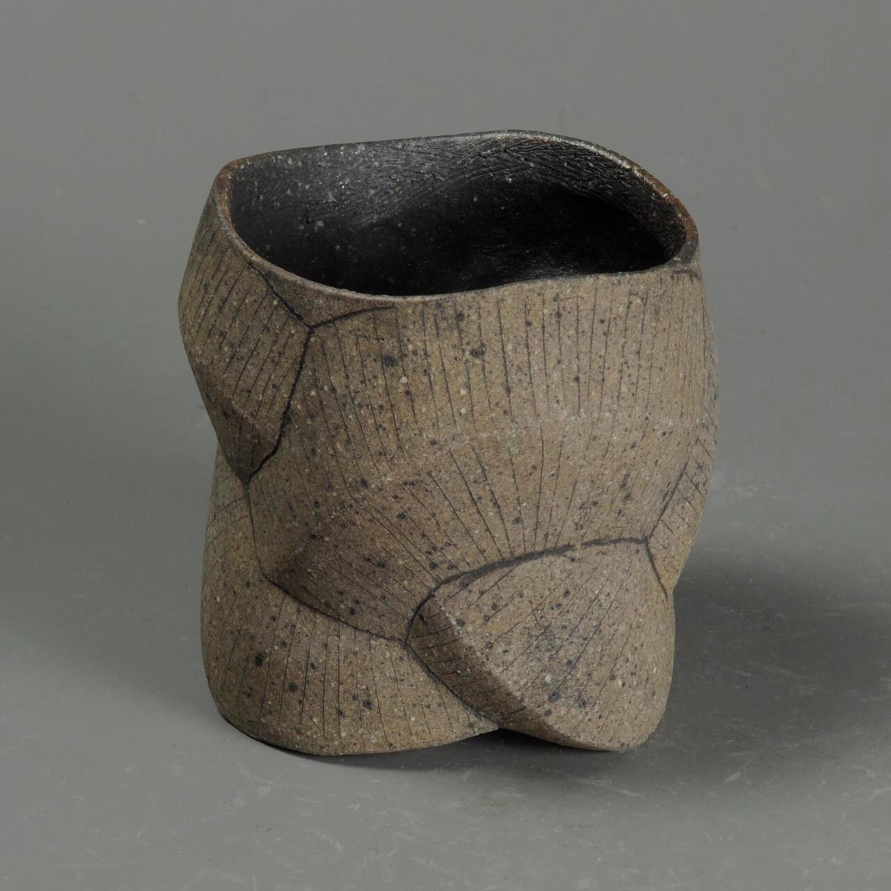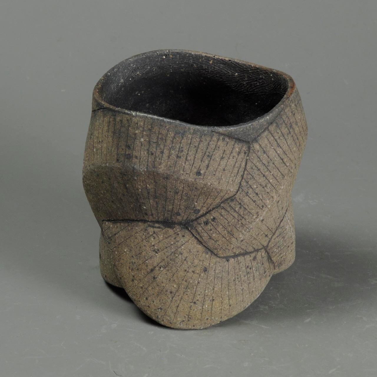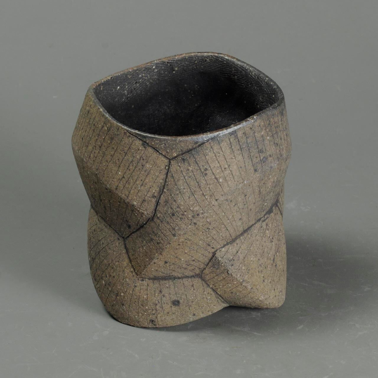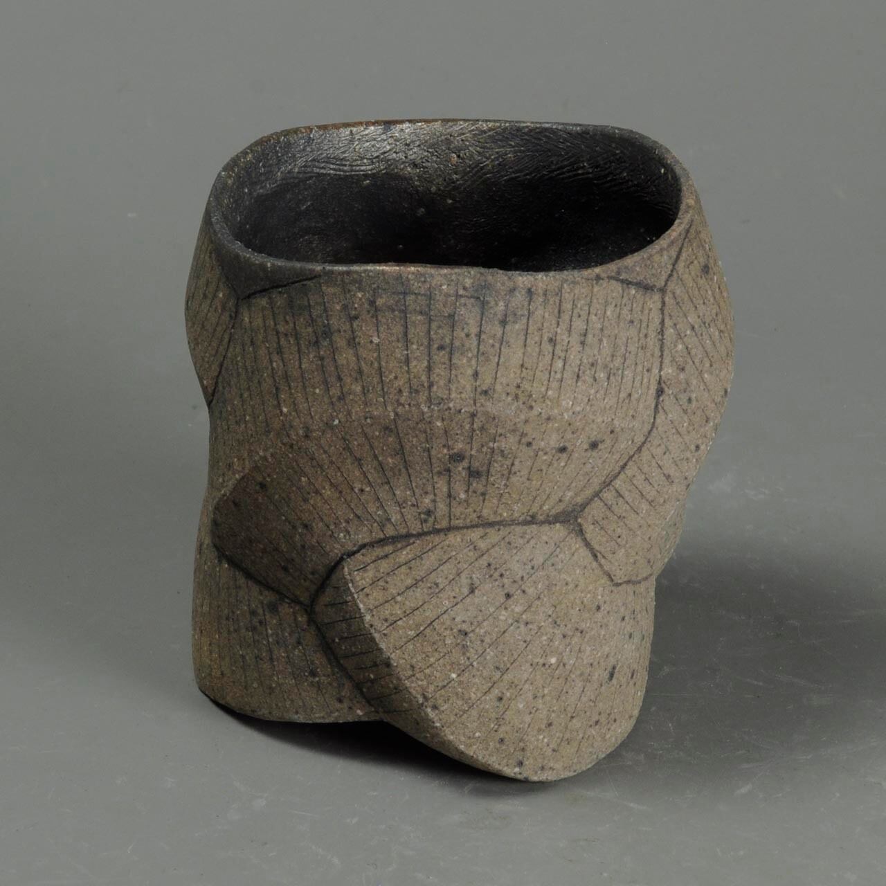 タタラ成形(石膏型に打ち込み)の焼きしめのカップです。