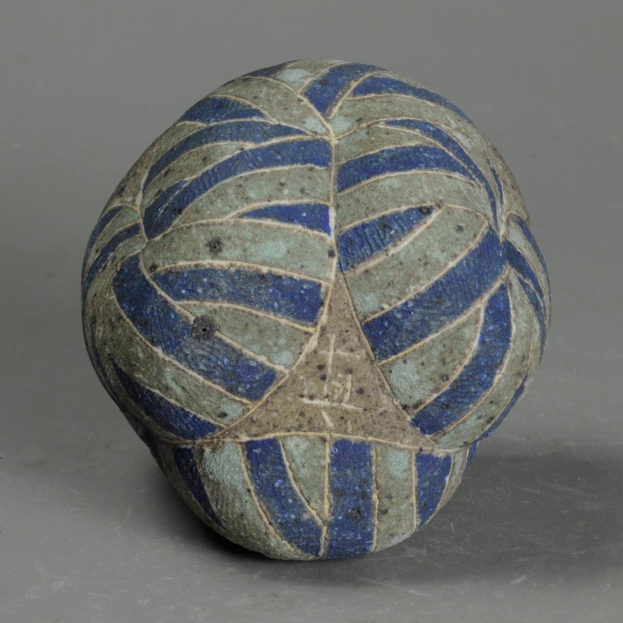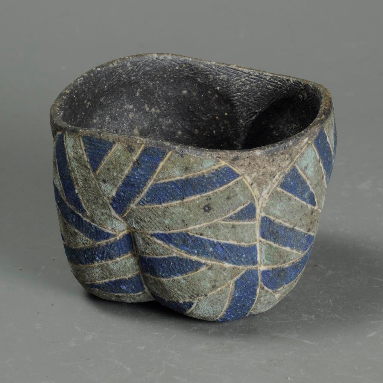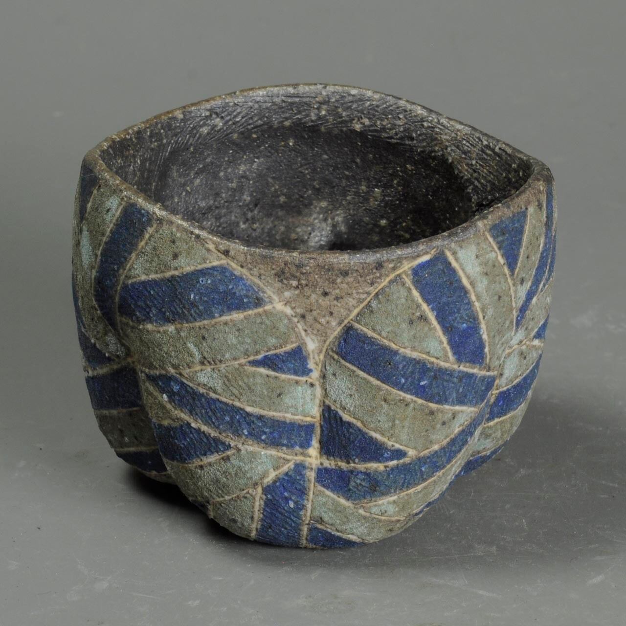 象嵌、彩色、焼きしめのぐい呑です。手びねり(玉作り)で成形しています。