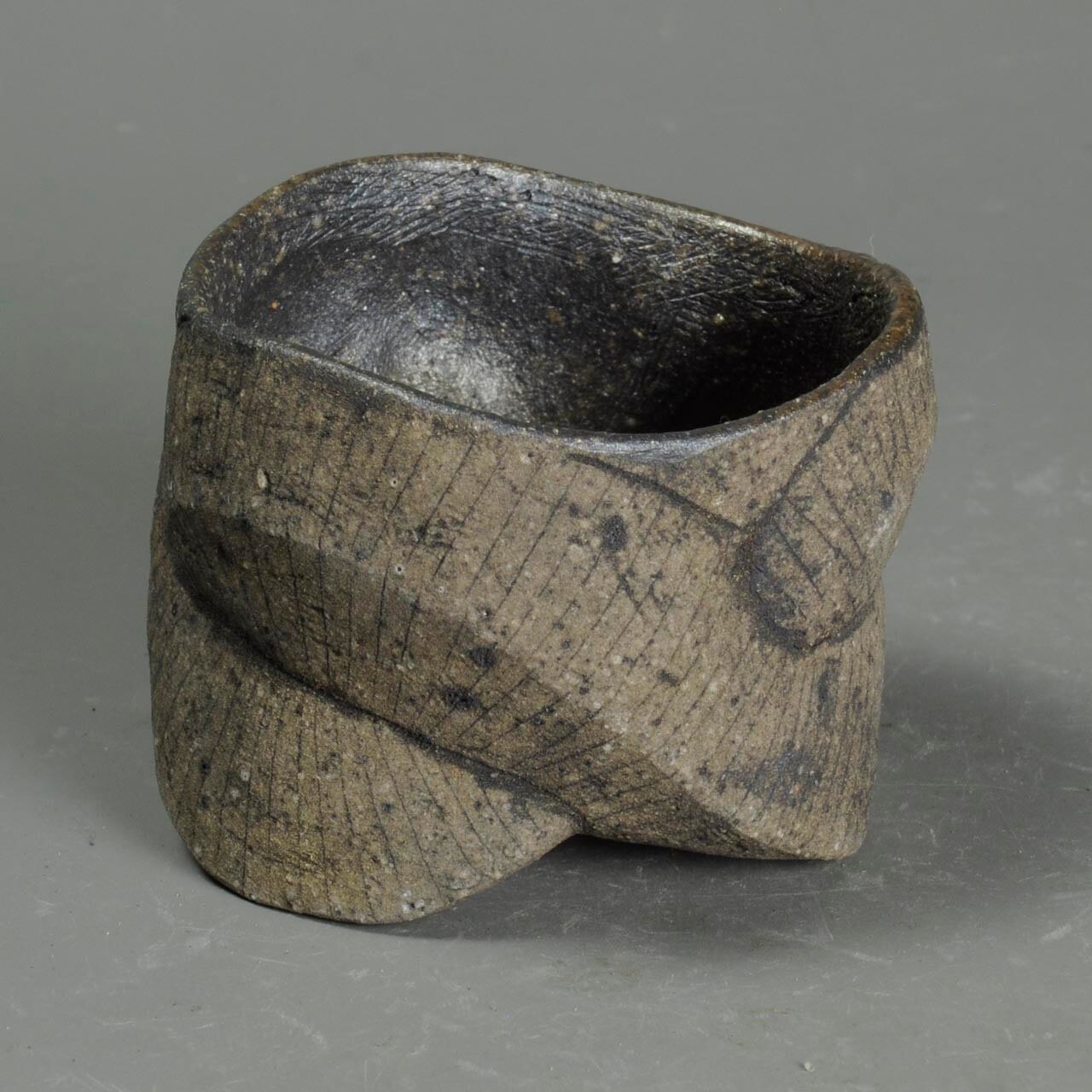 手びねり(玉つくり)で成形した焼き締めのぐい呑で、