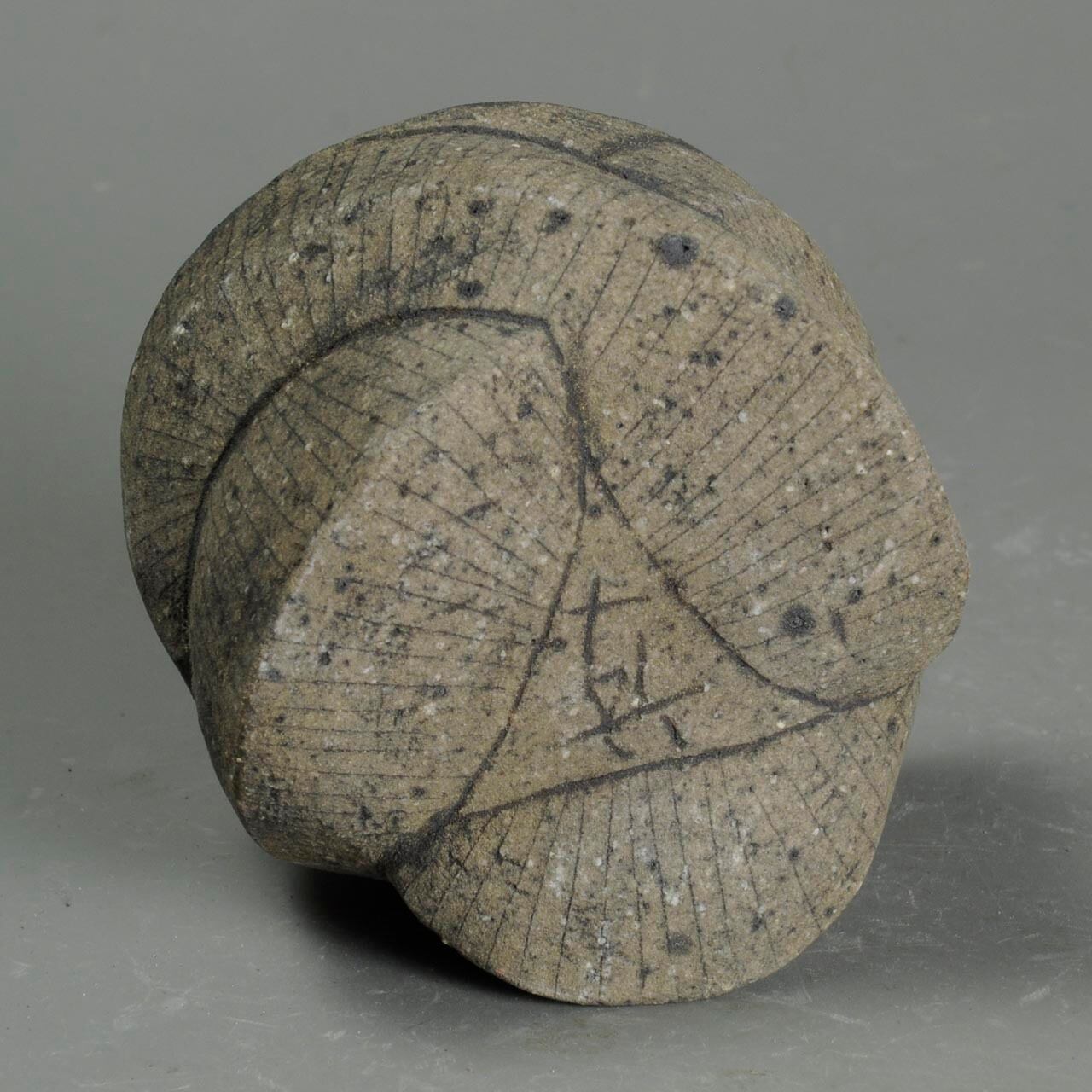 細い線は鉄分の多い土を象嵌していて、冷却還元焼成しています。