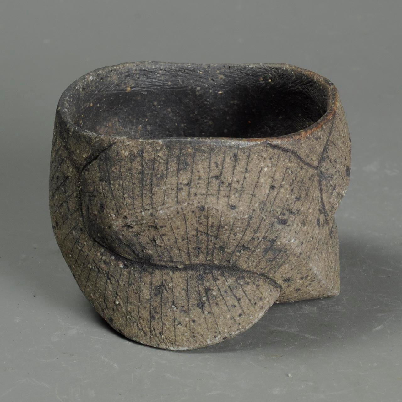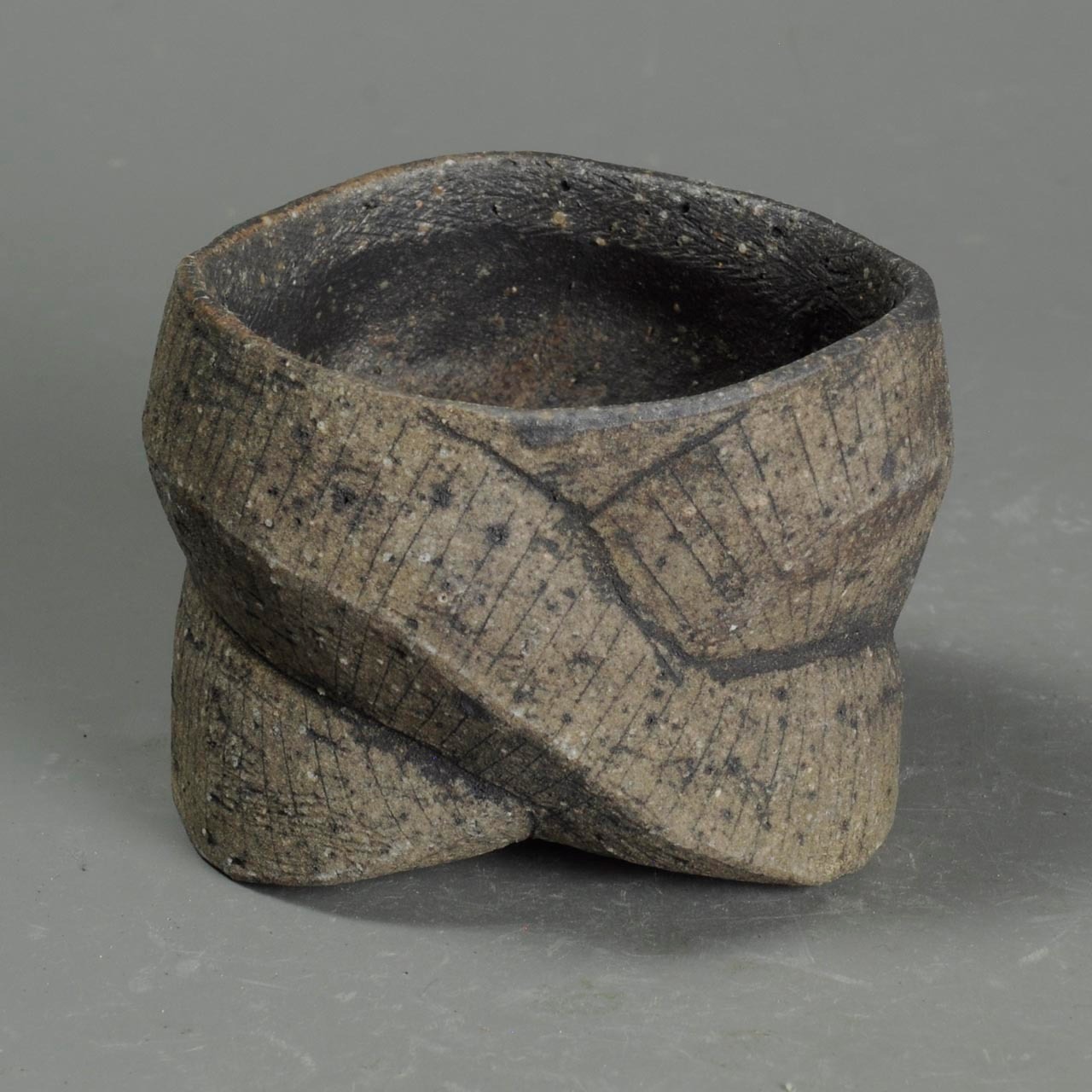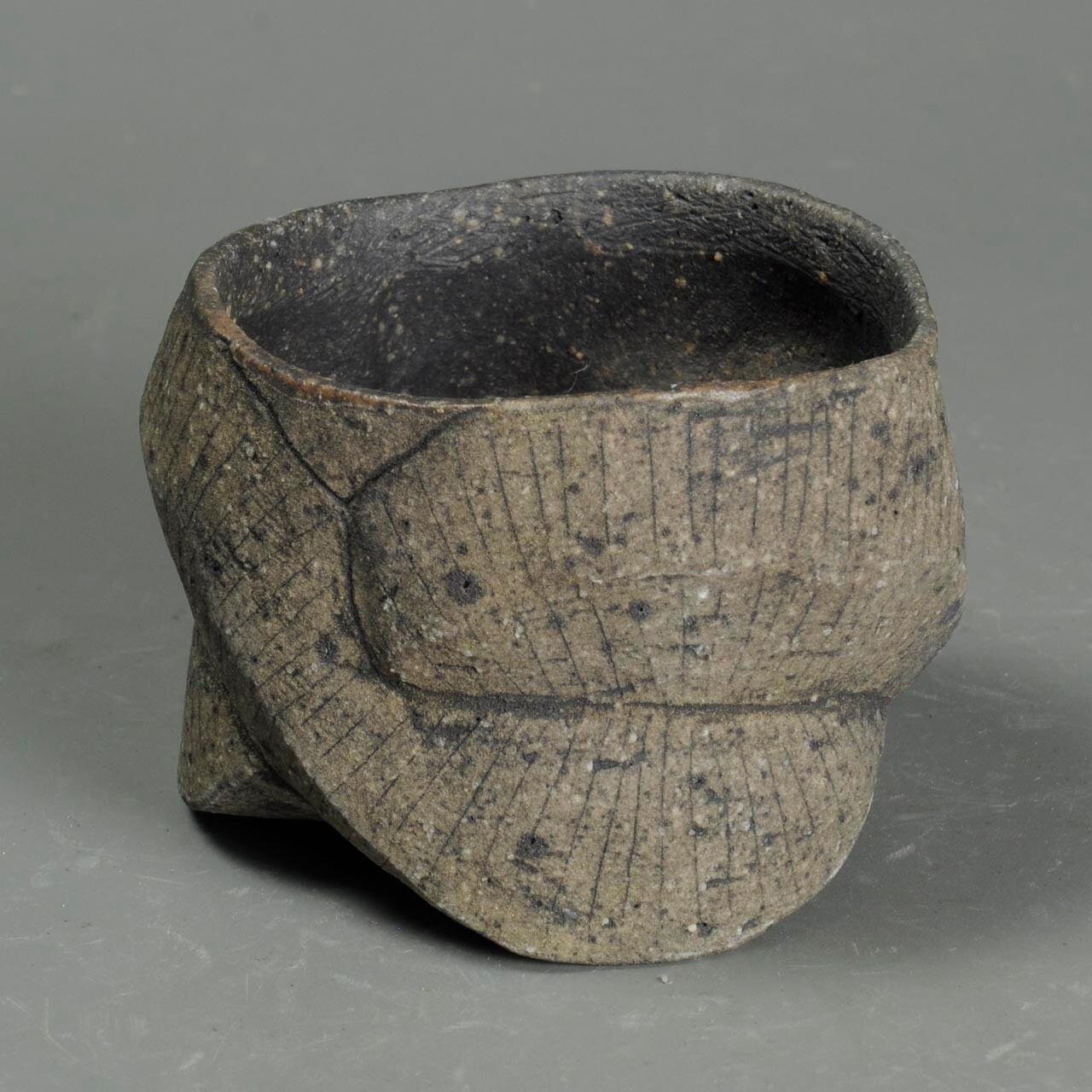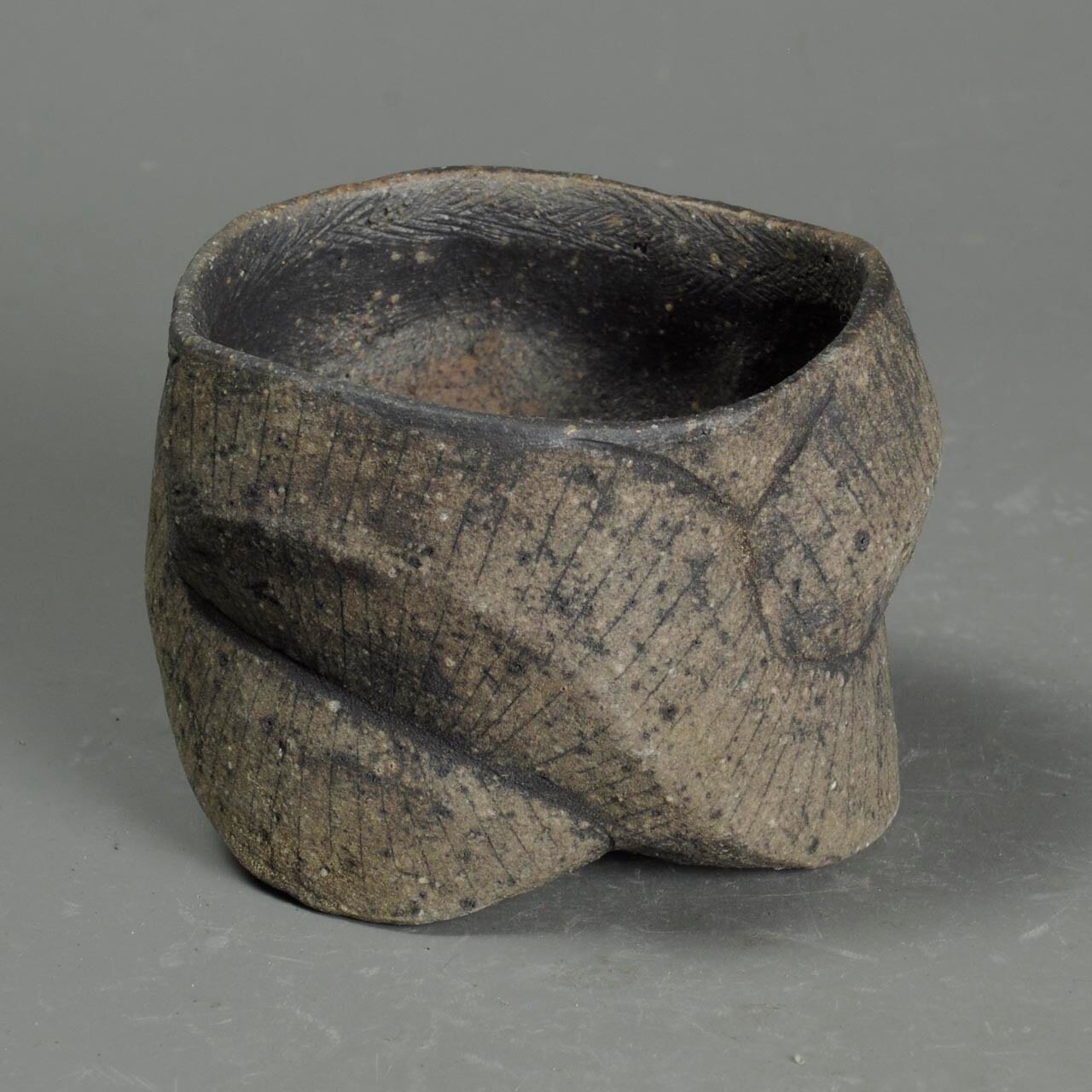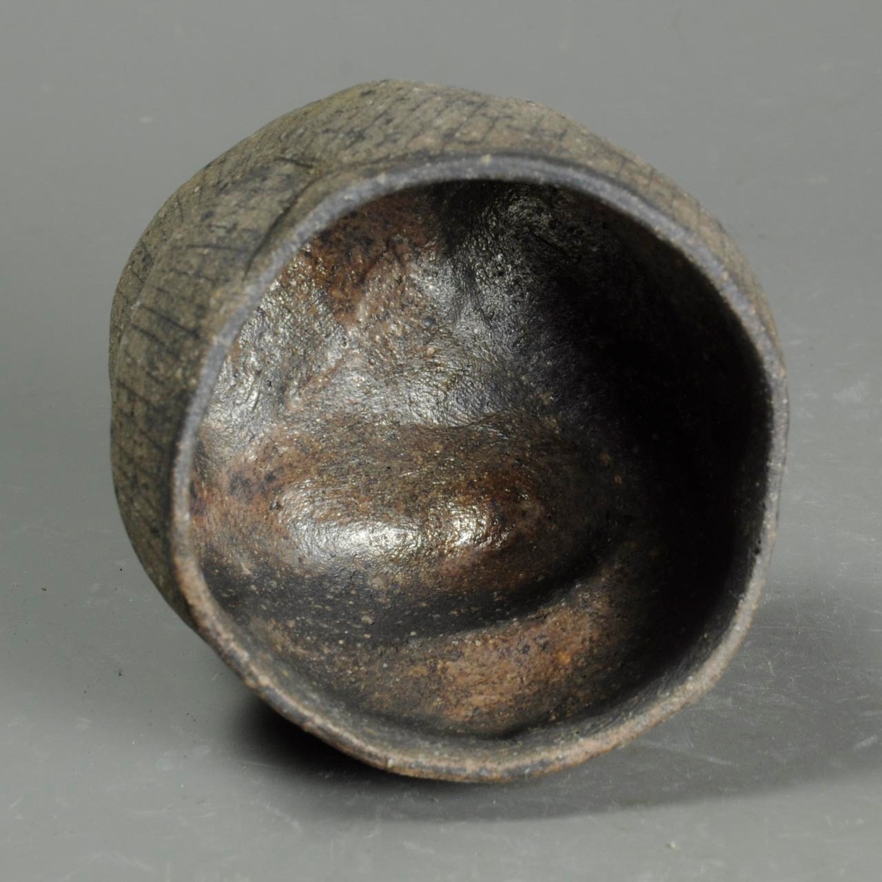手びねり(玉つくり)で成形した焼き締めのぐい呑で、