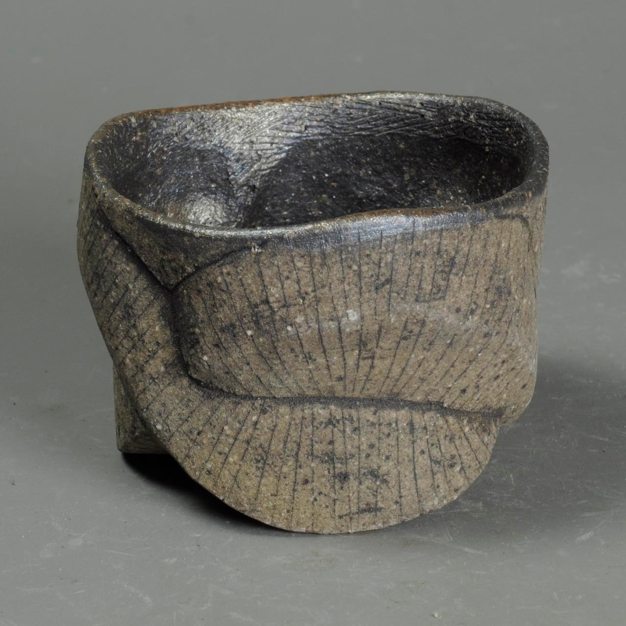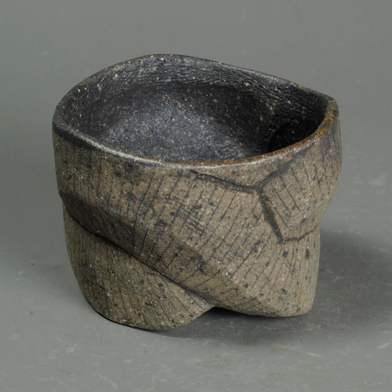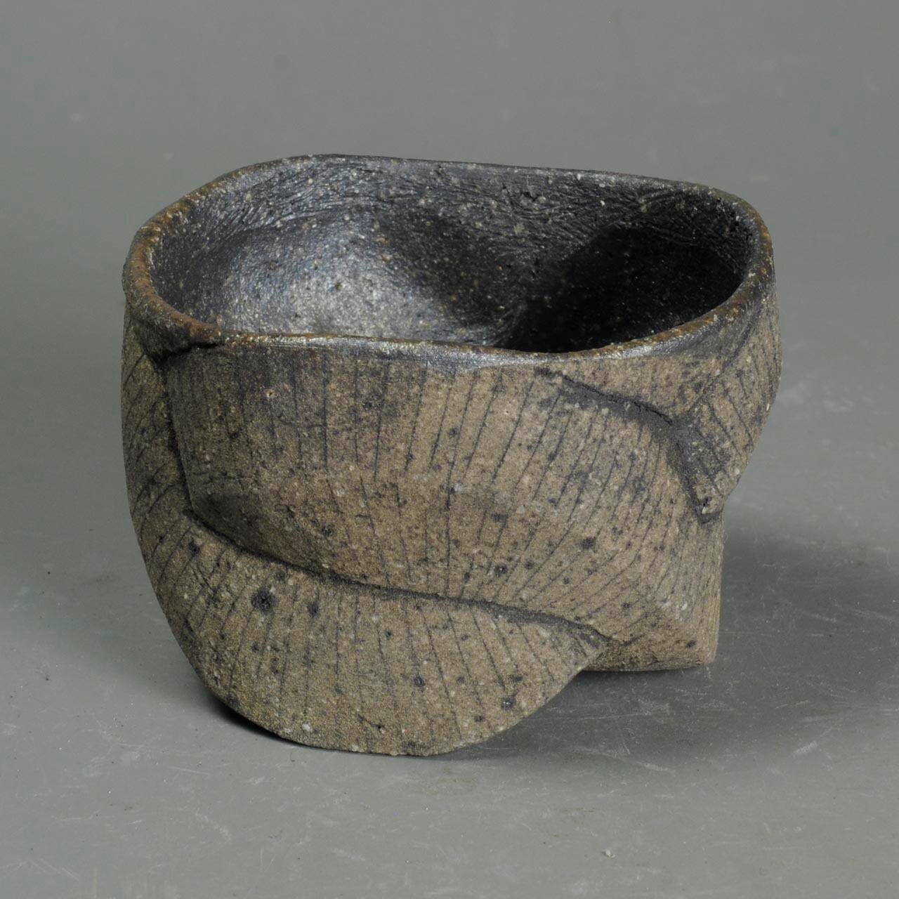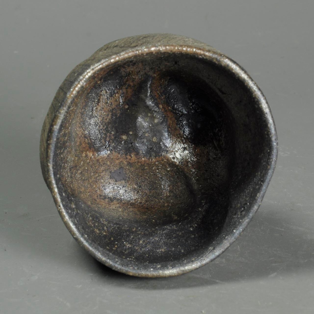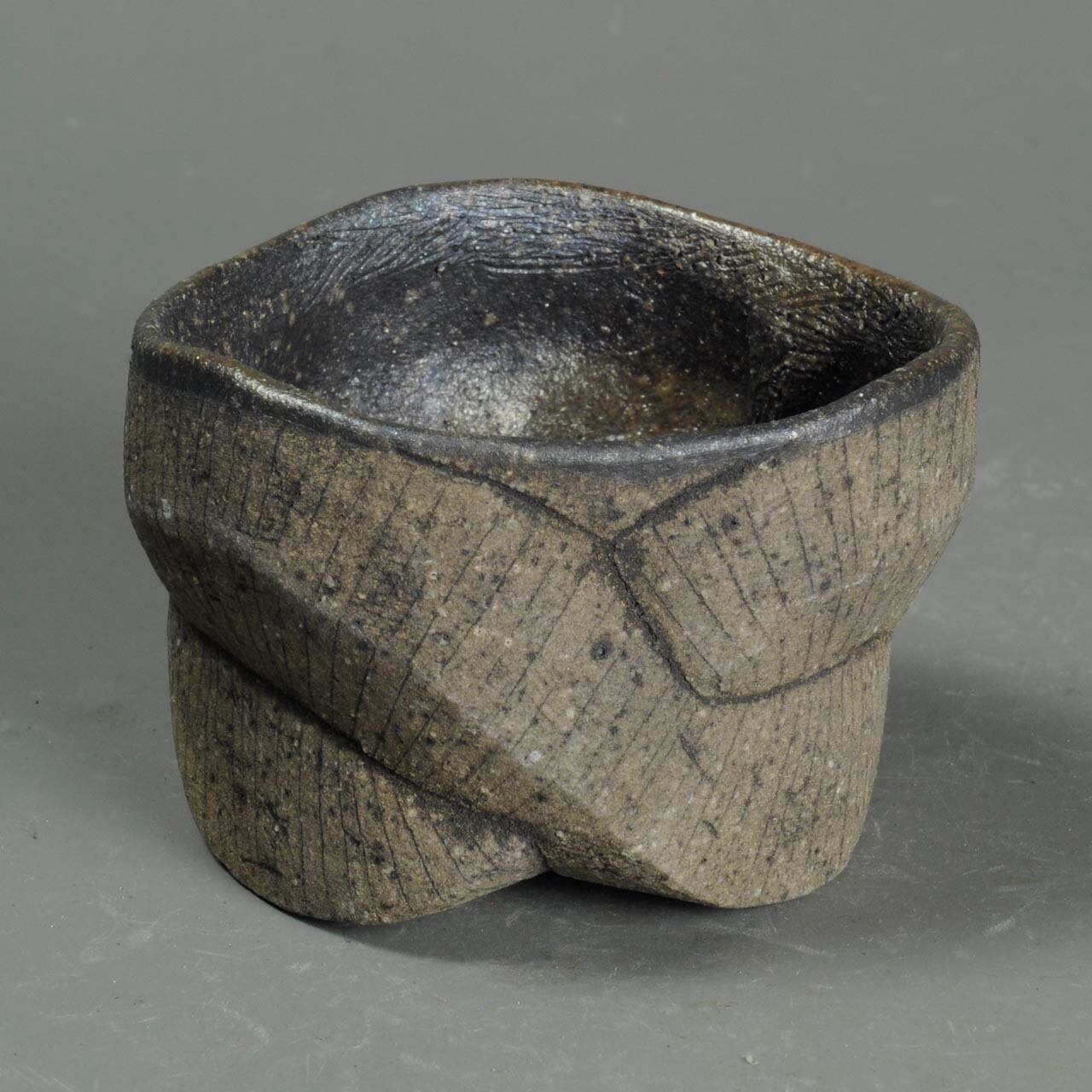 手びねり(玉つくり)で成形した焼き締めのぐい呑で、