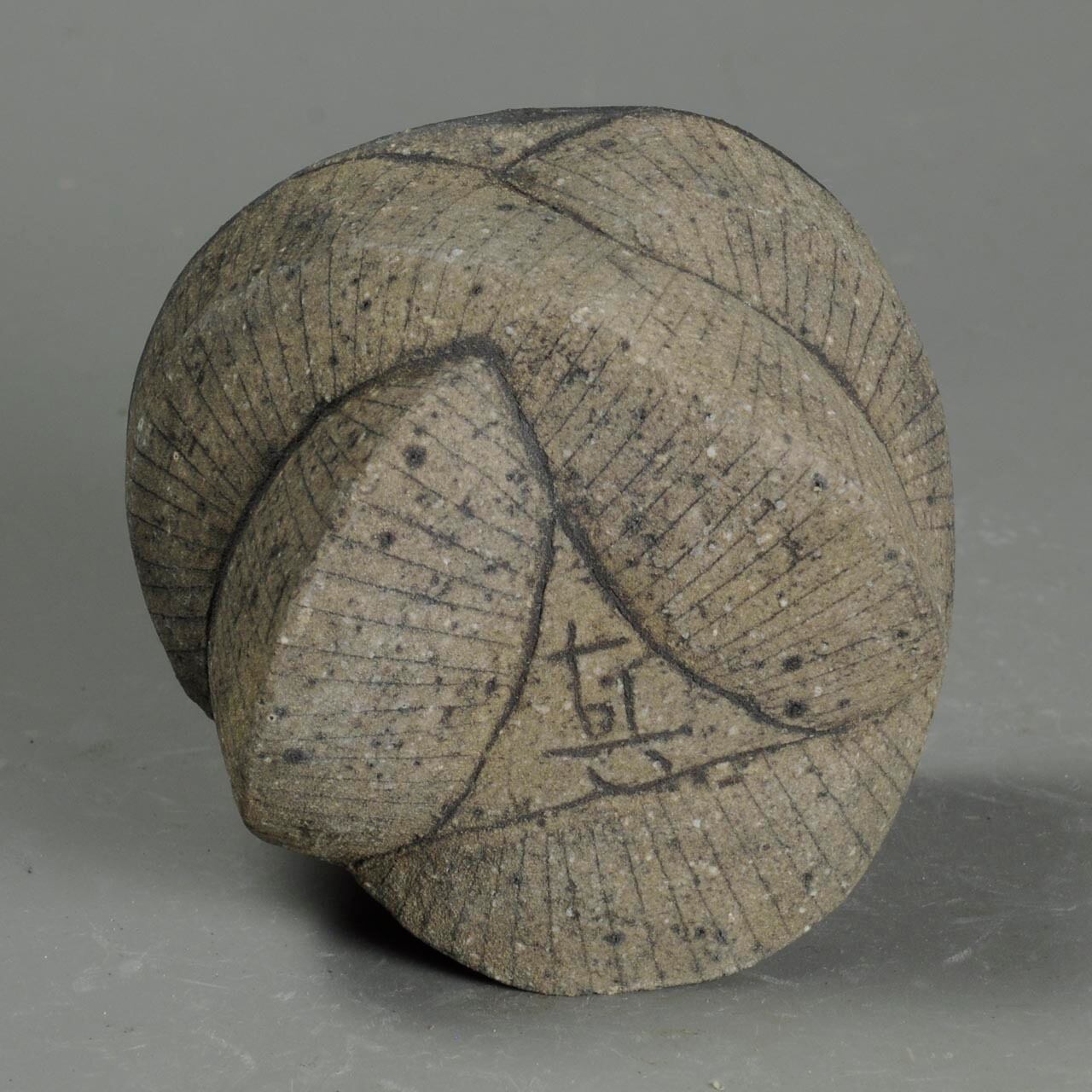 細い線は鉄分の多い土を象嵌していて、冷却還元焼成しています。