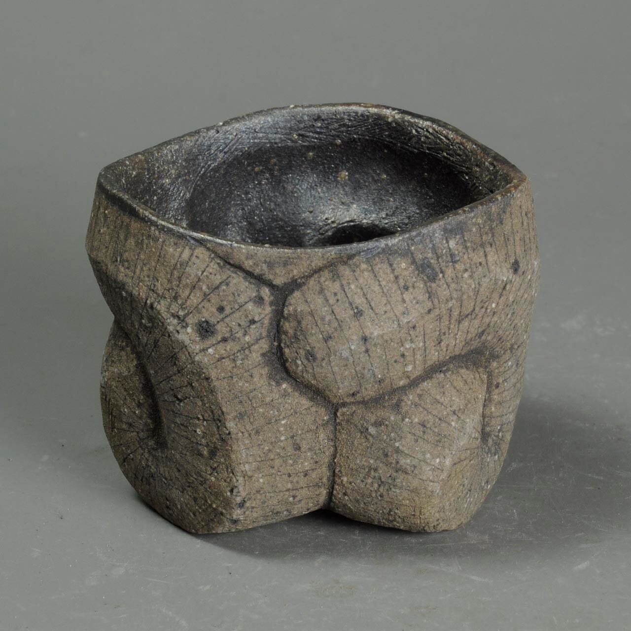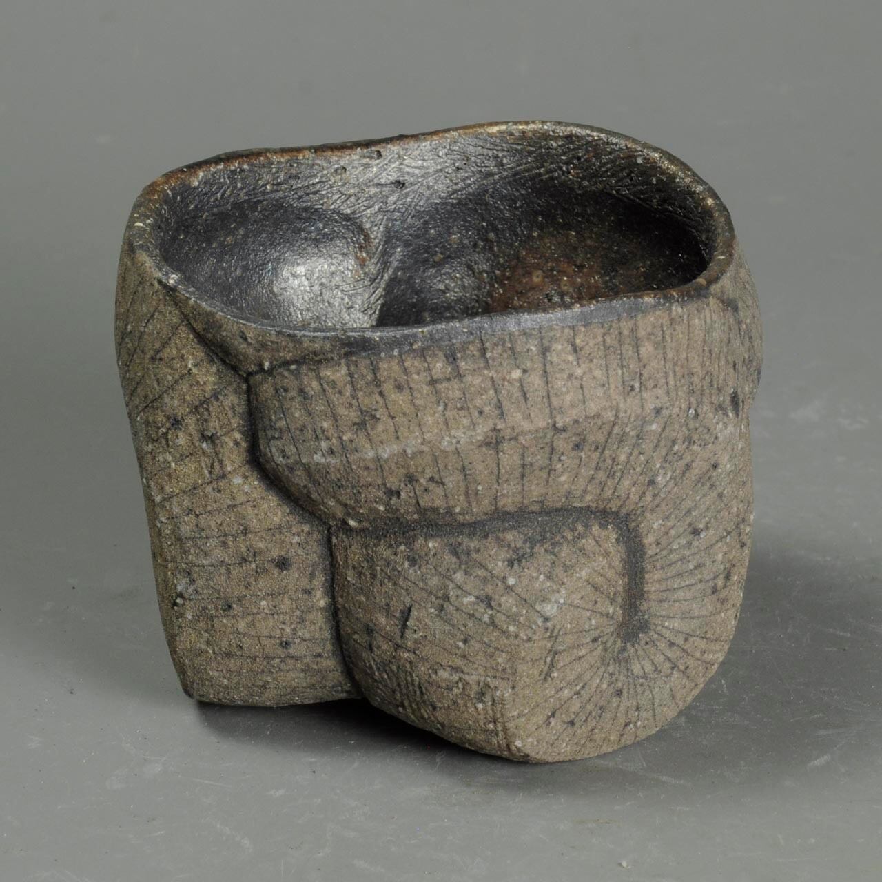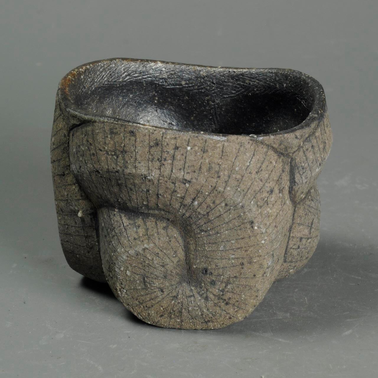 手びねり(玉つくり)で成形した焼き締めのぐい呑で、