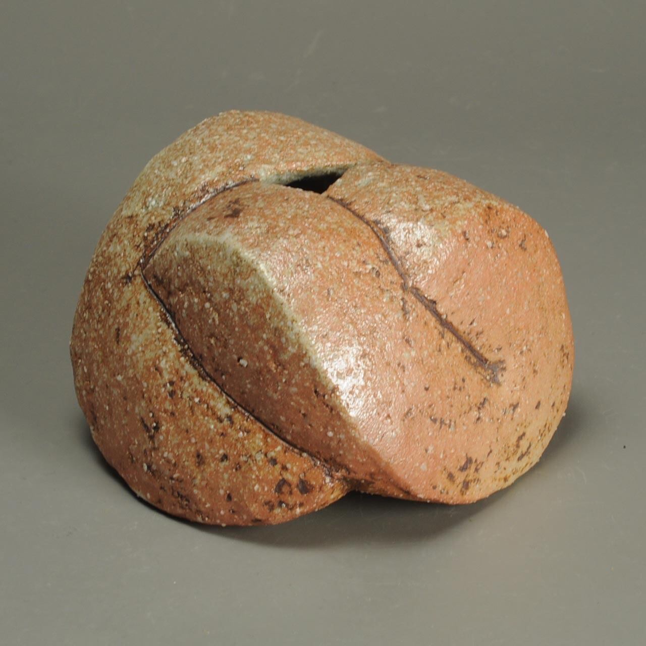 この作品は信楽の土で制作し、信楽の滋賀県陶芸の森の薪窯で焼きました。