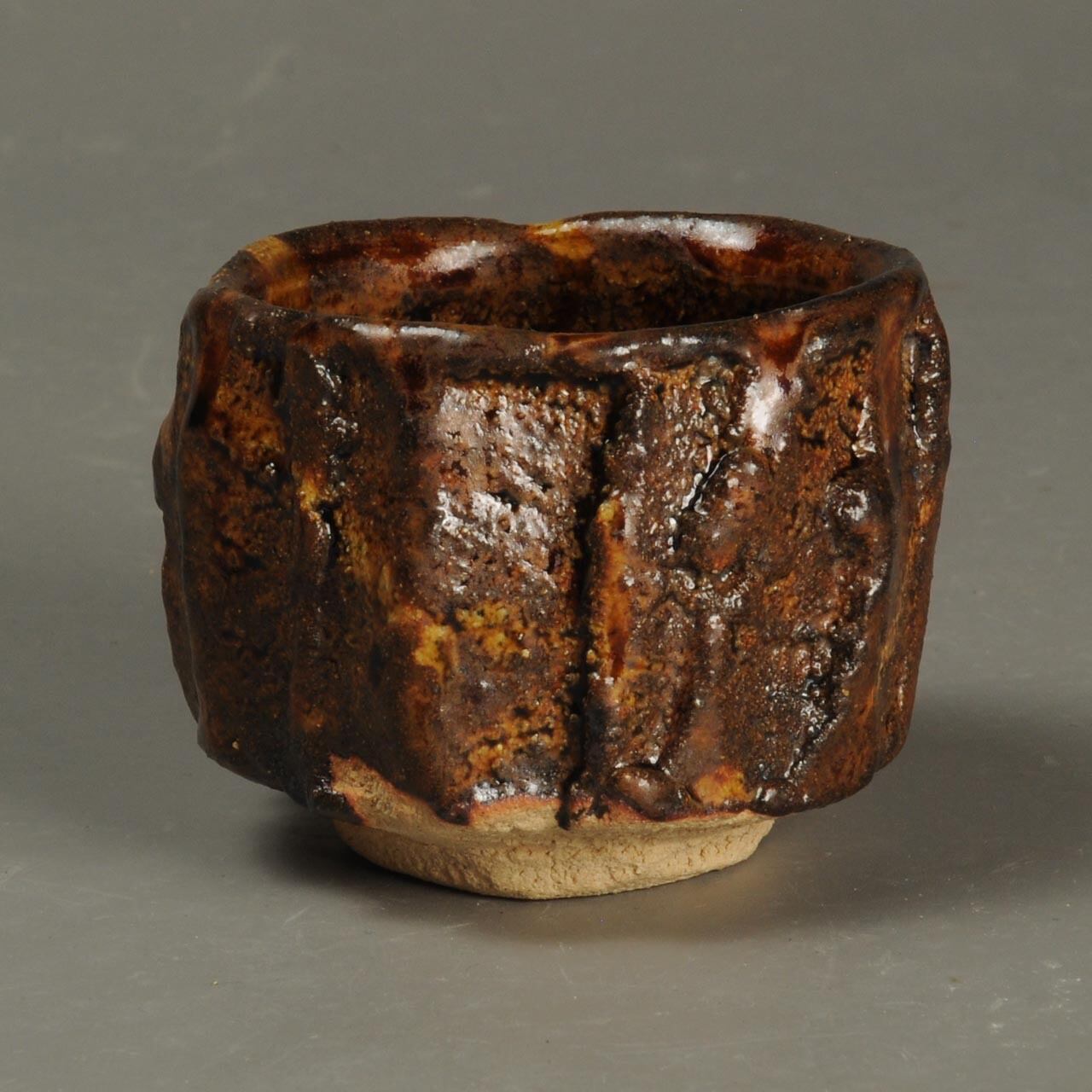 It is a sake cup made by cutting out from a solid of clay.