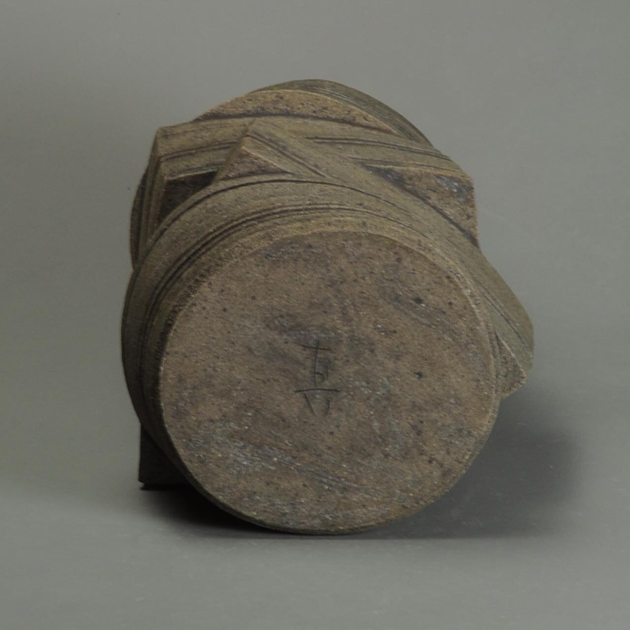 焼きしめの壷で、紐作りで作ってあります。冷却還元焼成です。