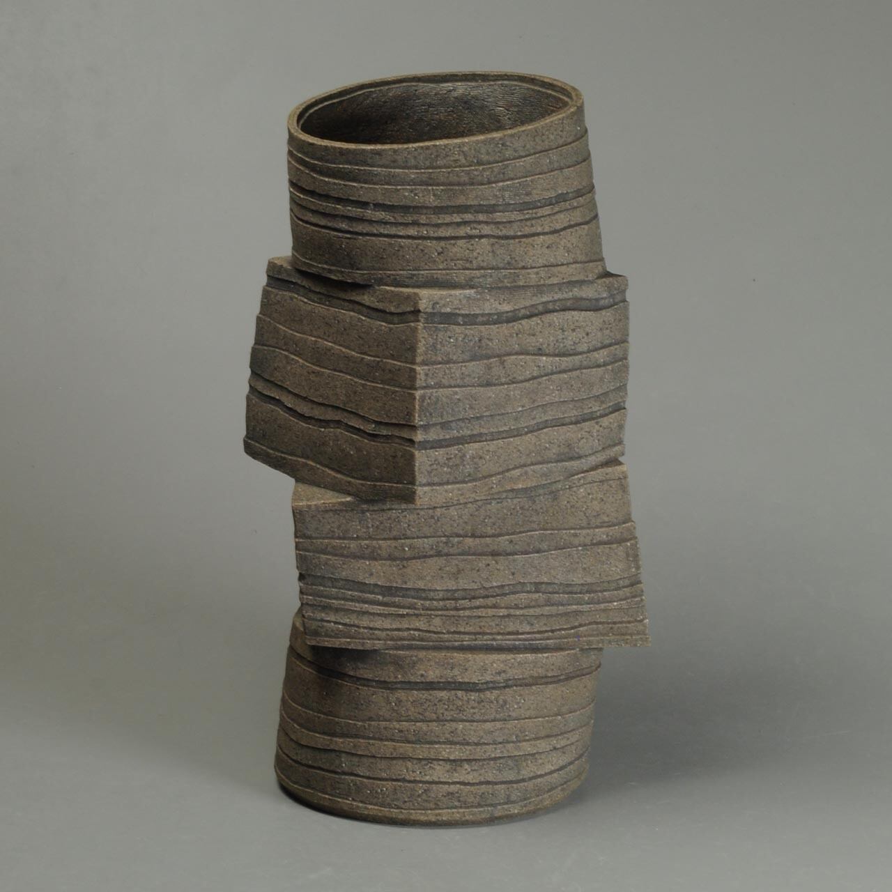 焼きしめの壷で、紐作りで作ってあります。冷却還元焼成です。