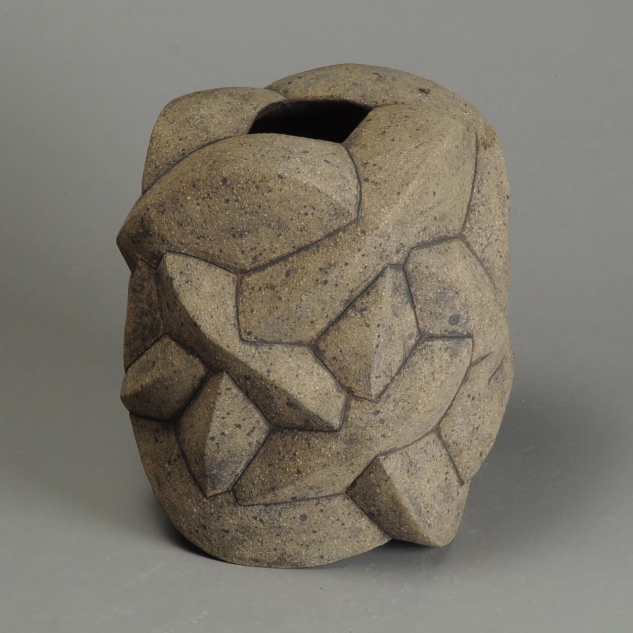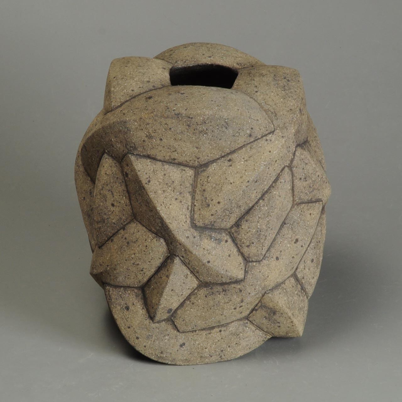 焼きしめの壷で、紐作りで作ってあります。冷却還元焼成です。