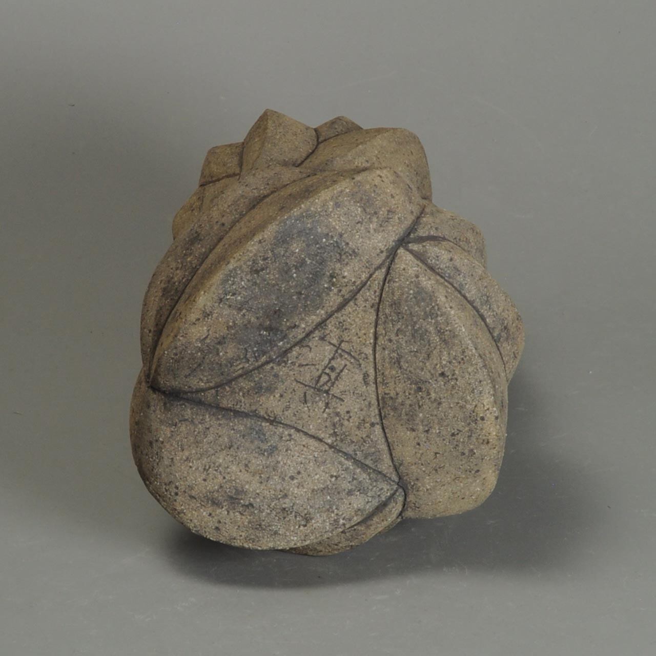 焼きしめの壷で、紐作りで作ってあります。冷却還元焼成です。