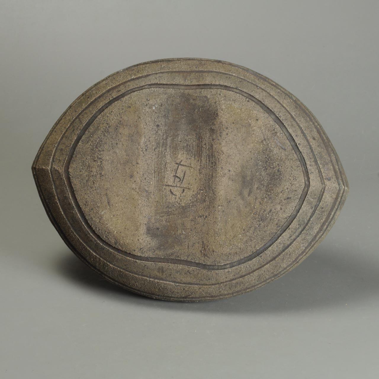 焼きしめの花器で、紐作りで作ってあります。冷却還元焼成です。