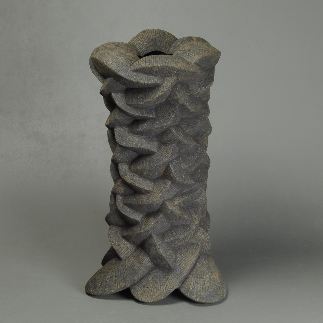 鉄象嵌壷 炻器 焼き締め オブジェ 496