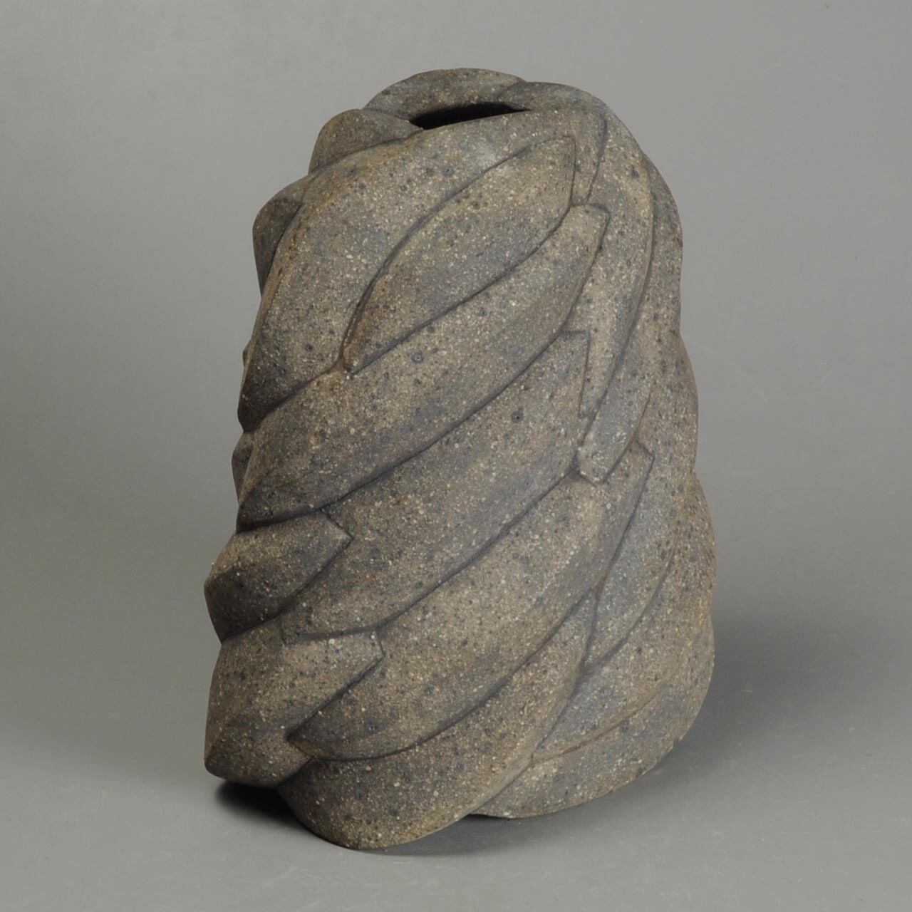 焼きしめの壷で、紐作りで作ってあります。冷却還元焼成です。