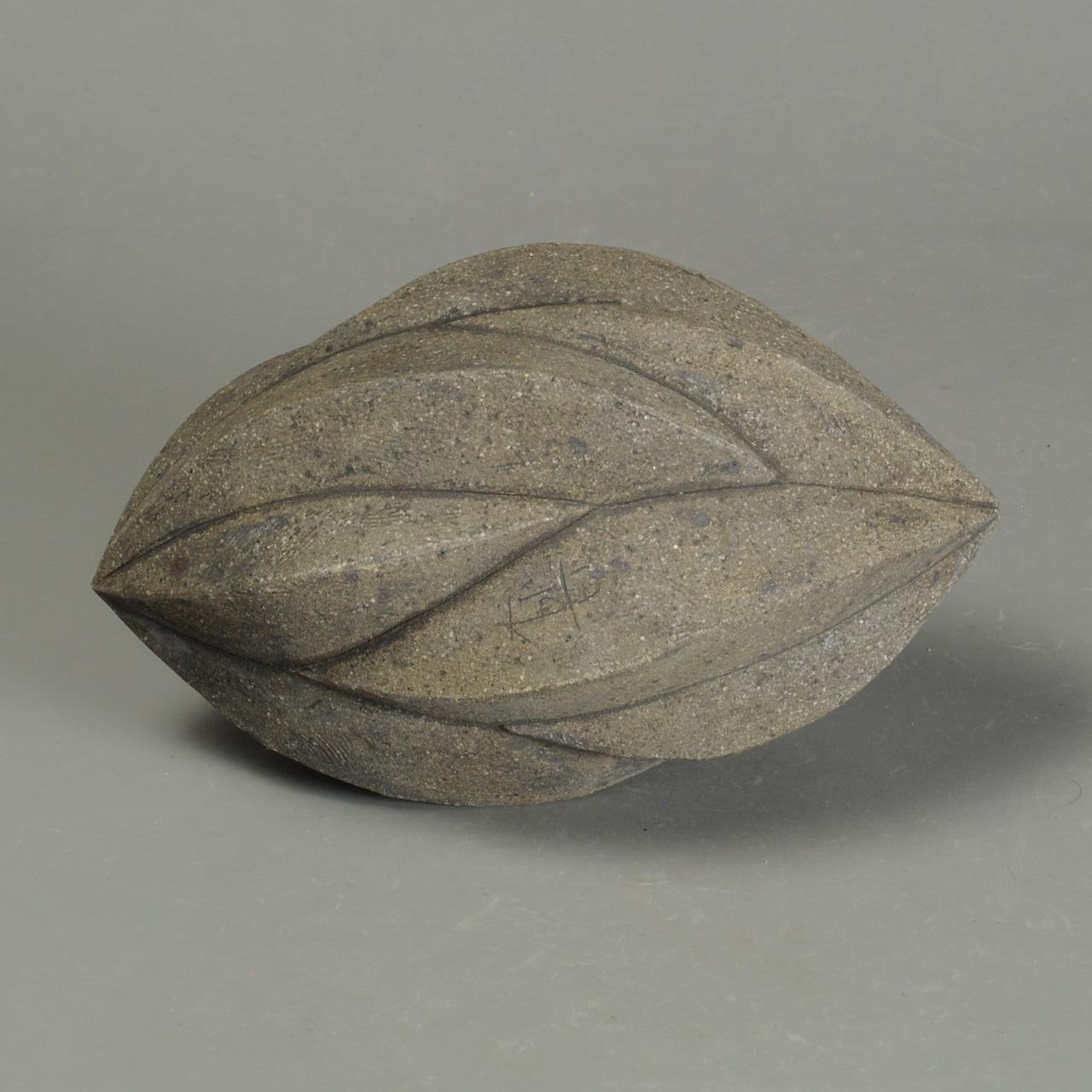 焼きしめの壷で、紐作りで作ってあります。冷却還元焼成です。