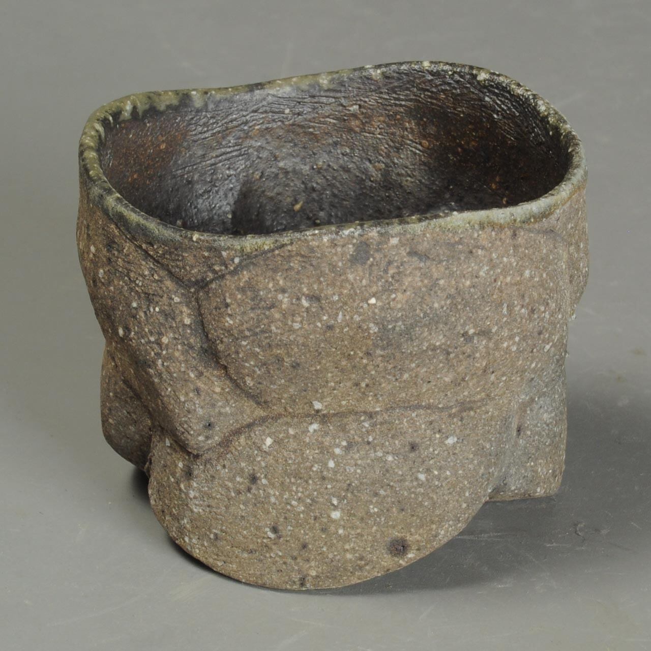 手びねり(玉つくり)で成形したぐい呑で、冷却還元で焼成しています。