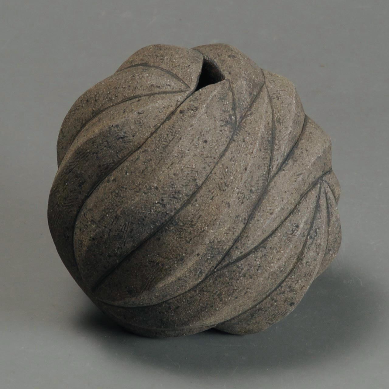焼きしめの壷で、紐作りで作ってあります。冷却還元焼成です。