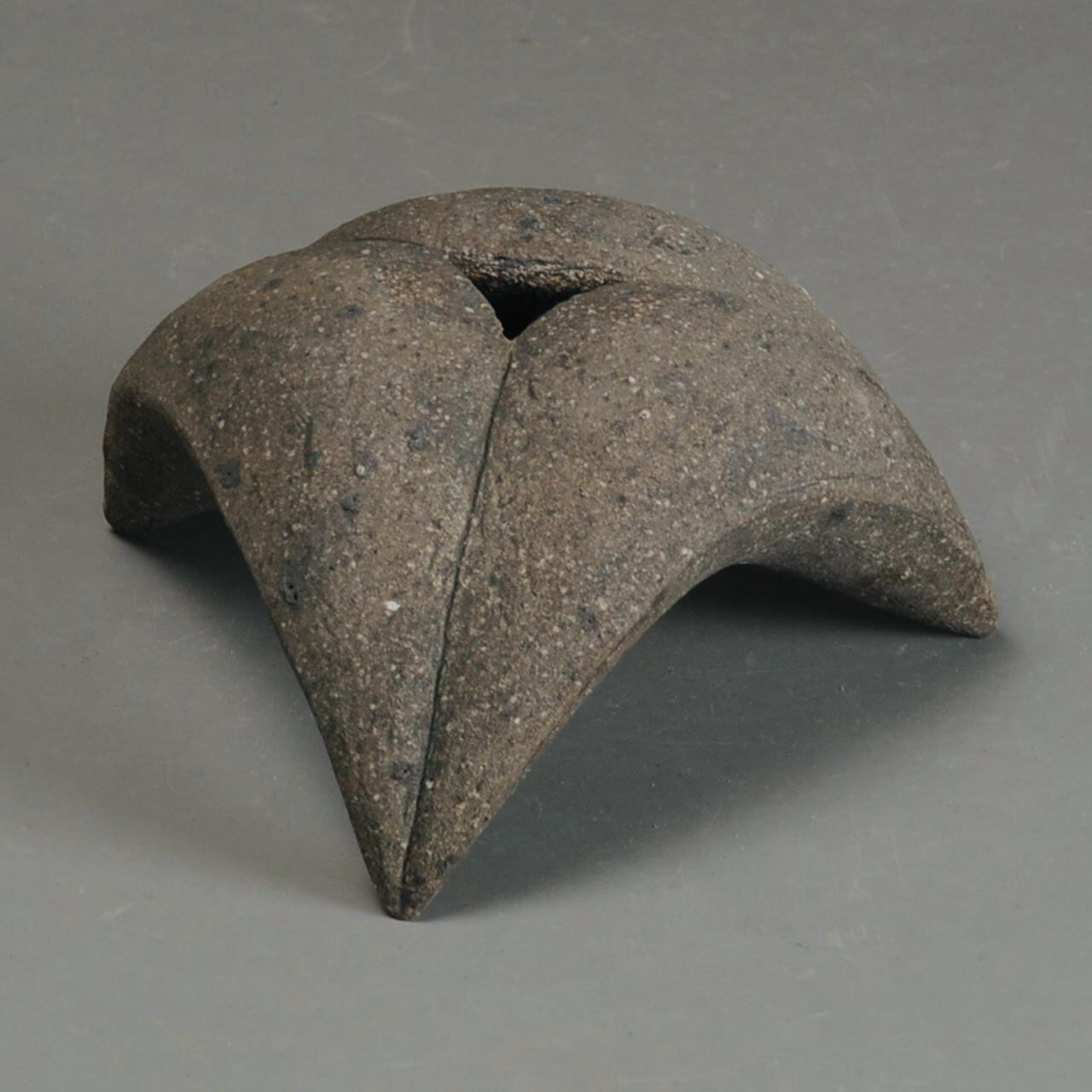 焼きしめの壷で、紐作りで作ってあります。冷却還元焼成です。