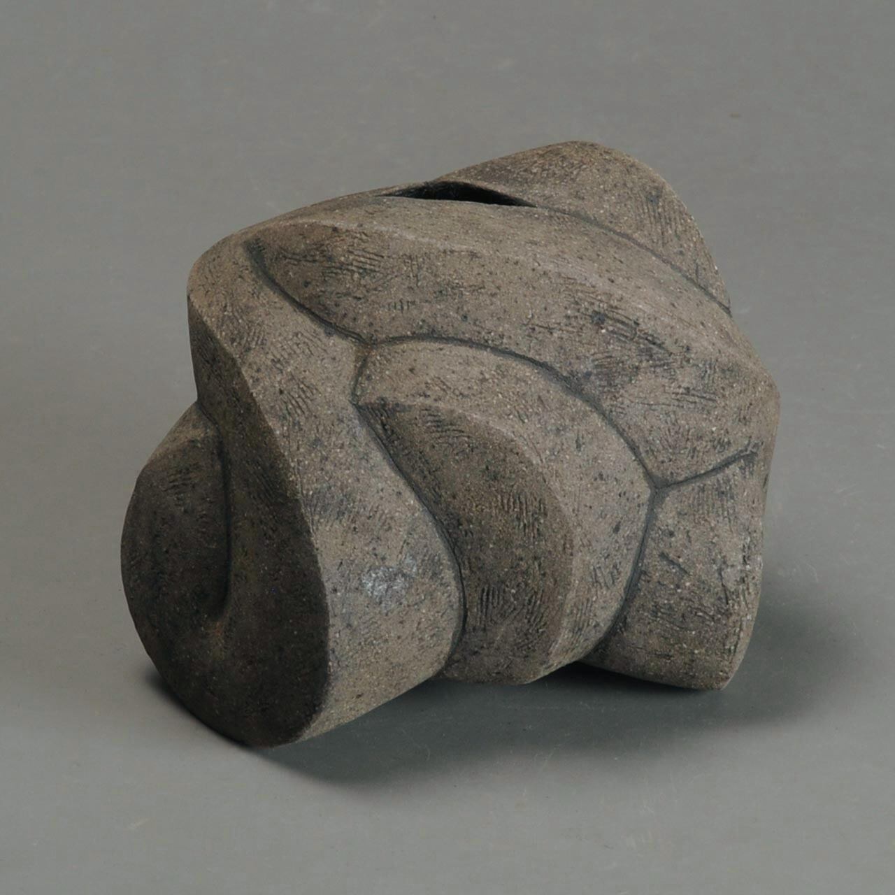 焼きしめの壷で、紐作りで作ってあります。冷却還元焼成です。