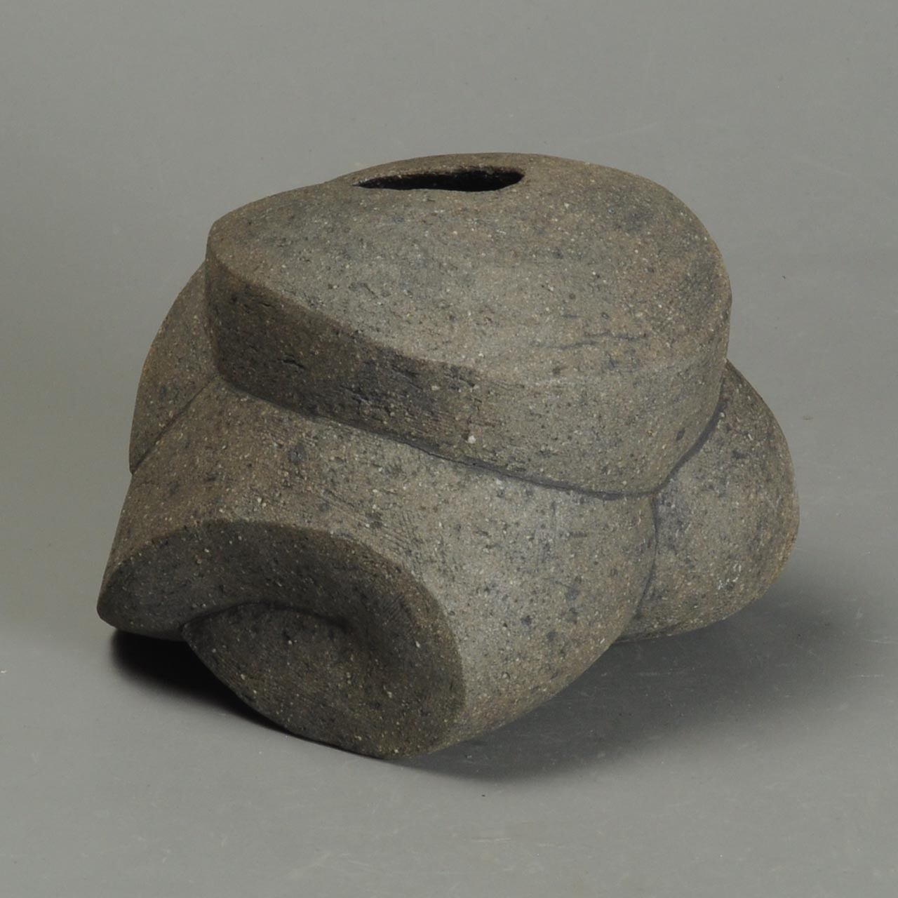 焼きしめの壷で、紐作りで作ってあります。冷却還元焼成です。
