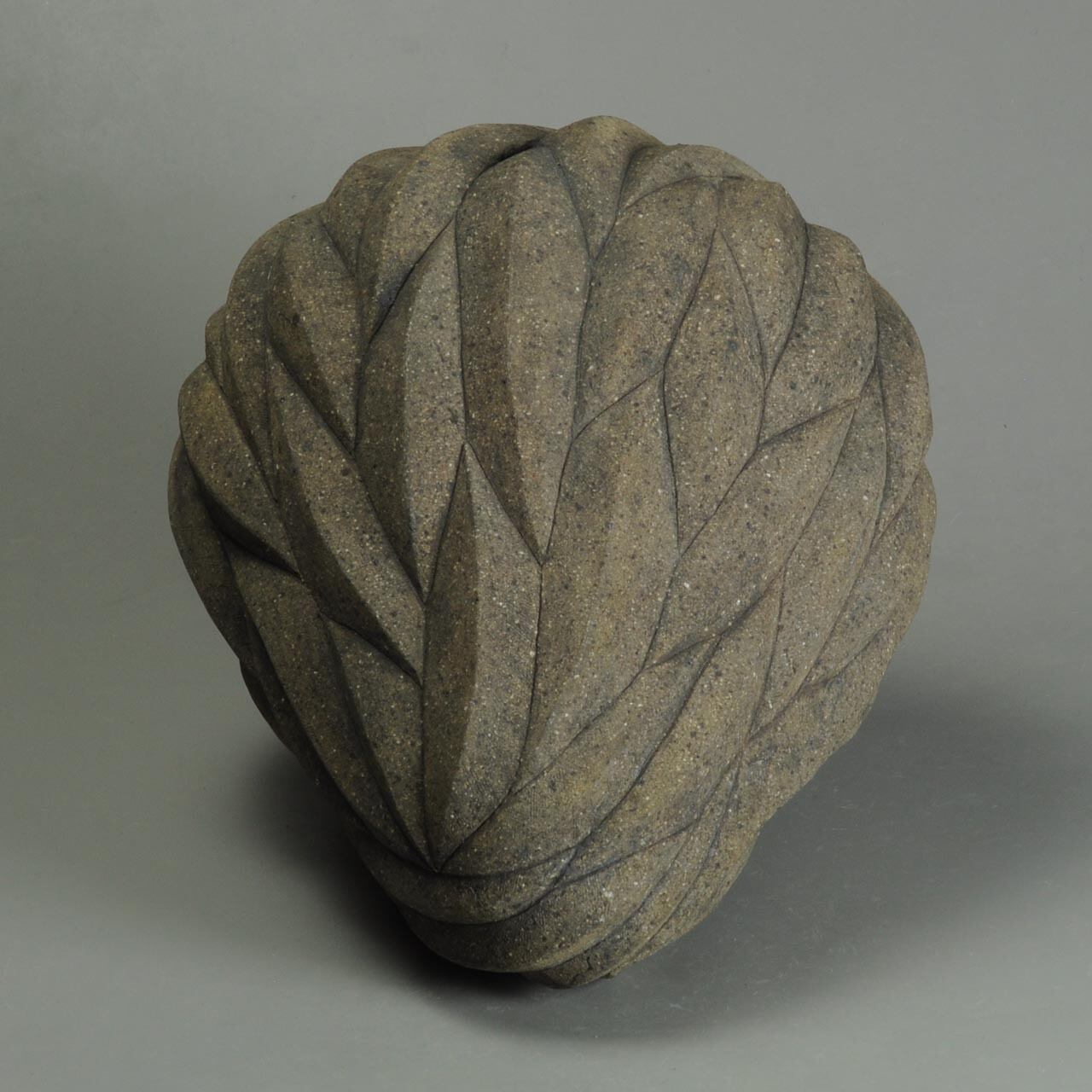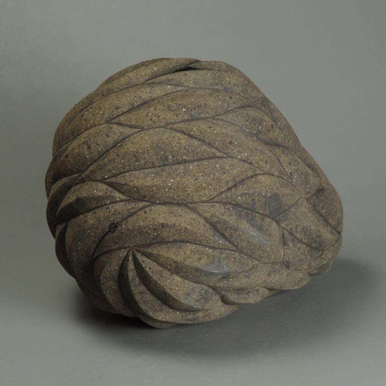 焼きしめの壷で、紐作りで作ってあります。冷却還元焼成です。