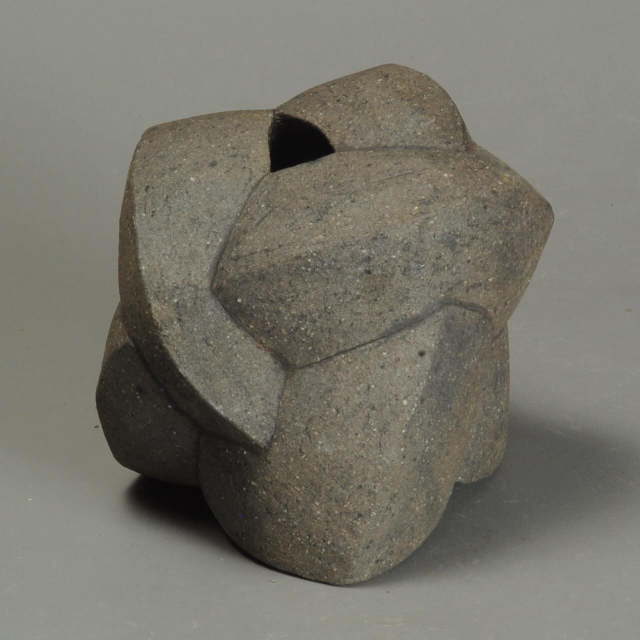 焼きしめの壷で、紐作りで作ってあります。冷却還元焼成です。