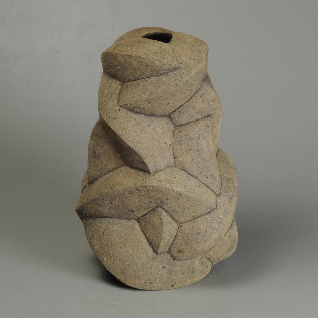 焼きしめの壷で、紐作りで作ってあります。冷却還元焼成です。