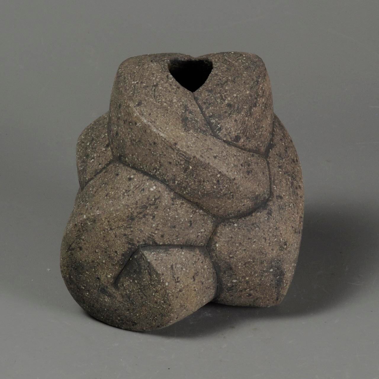 焼きしめの壷で、紐作りで作ってあります。冷却還元焼成です。
