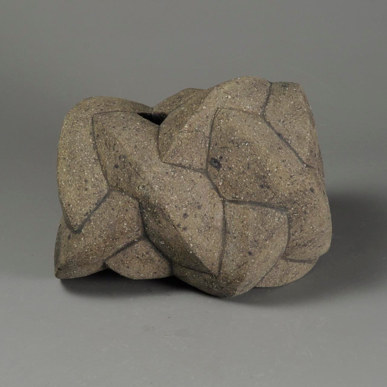 焼きしめの壷で、紐作りで作ってあります。冷却還元焼成です。