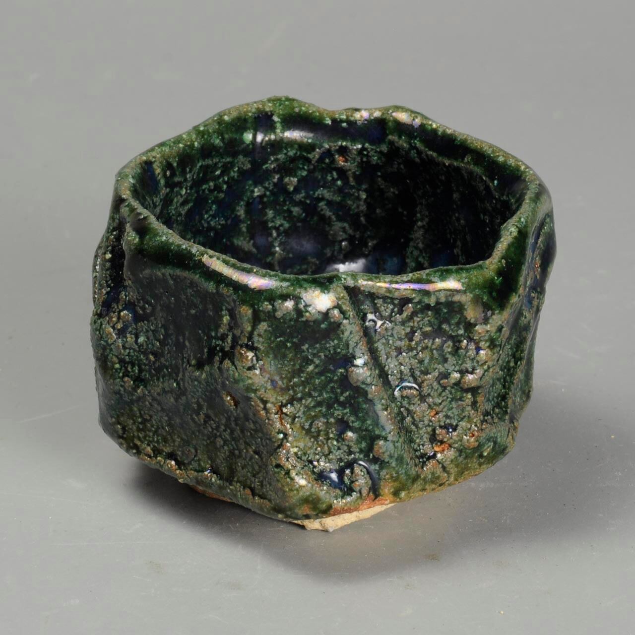 酸化で焼成していて、釉薬は織部釉で原土の荒々しさがでています。