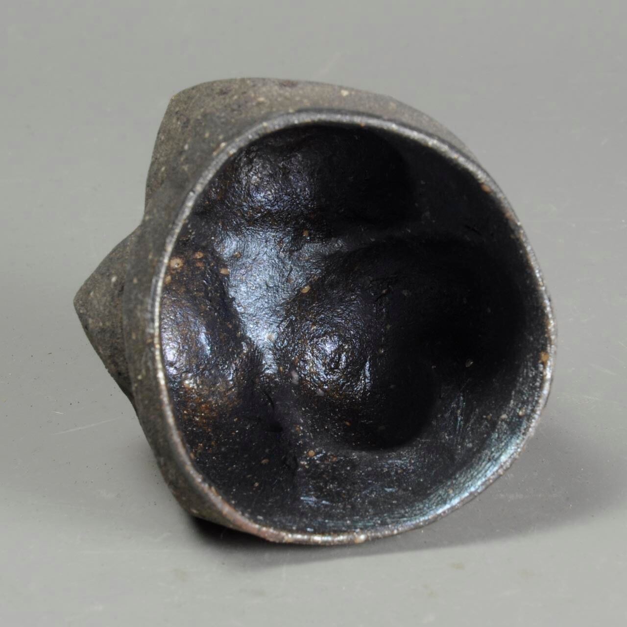 手びねり(玉つくり)で成形したぐい呑で、冷却還元で焼成しています。