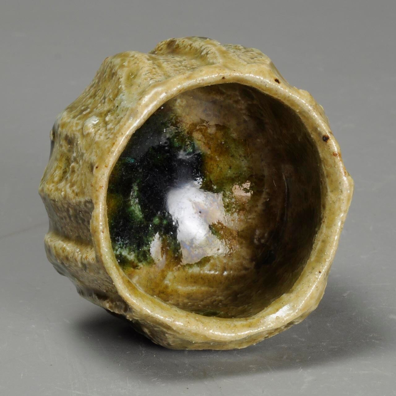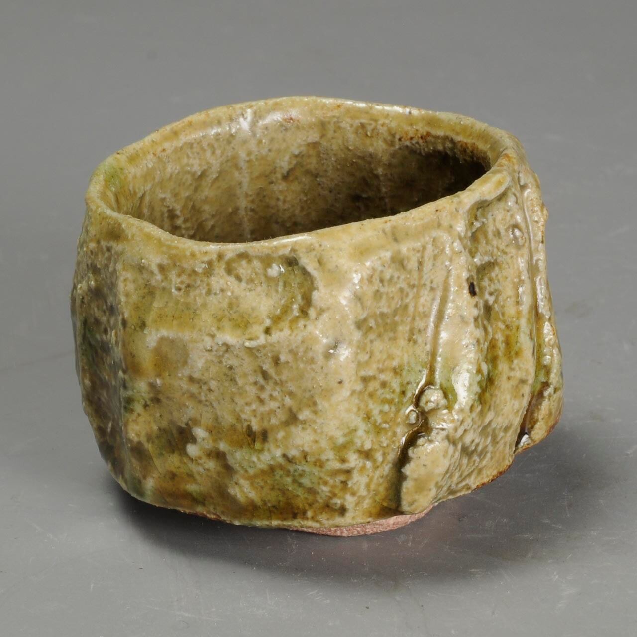 美濃系の少し鉄分のある原土を塊から刳り貫いて成形したぐい呑です。